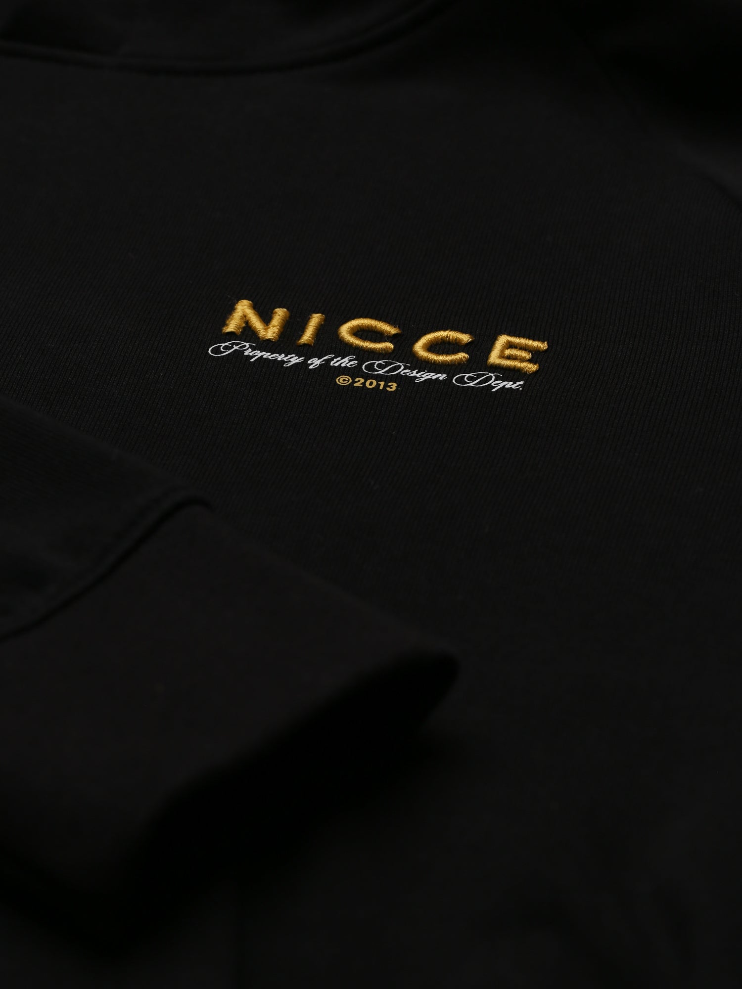 The Meridian Hoodie in Black stands out with white and gold embroidered logos on the front and back. The clean contrast detailing adds a refined edge to a core streetwear silhouette. Finished with a classic kangaroo pocket and ribbed trims for a structured fit.