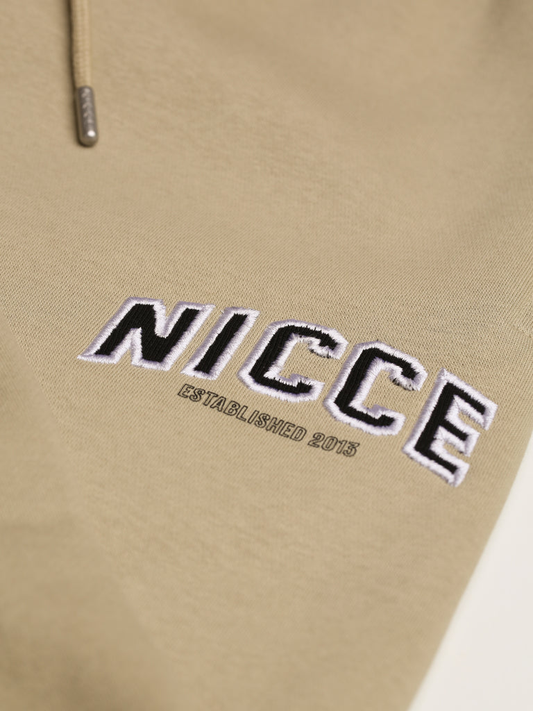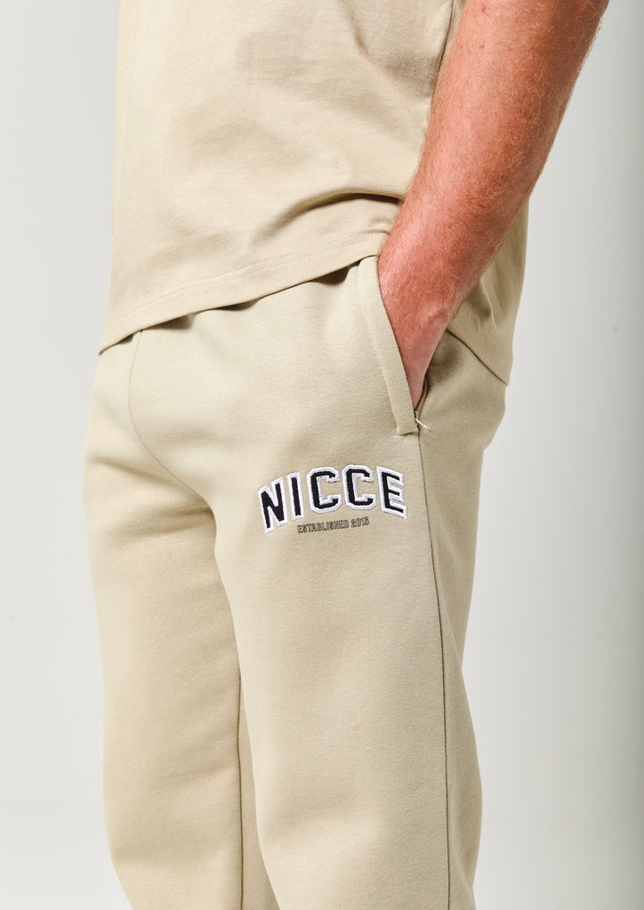 The Elevate Cuffed Joggers in Grey Stone offer a soft neutral tone with raised embroidery on the thigh. The arch-style NICCE logo and script detail are stitched in tonal contrast, giving the joggers a minimal but defined finish. Complete with ribbed cuffs, a drawcord waist, and fleece-backed fabric for comfort.