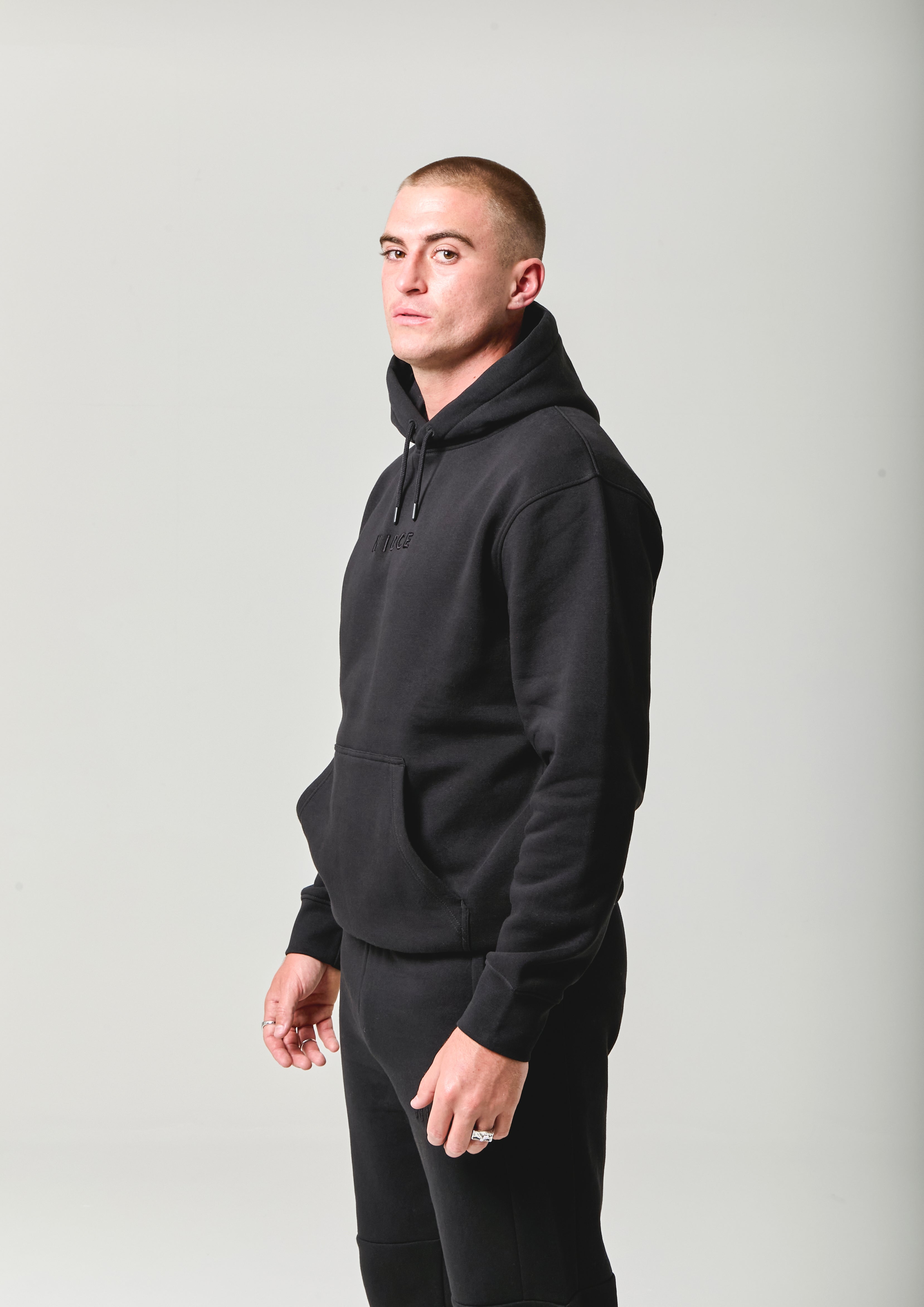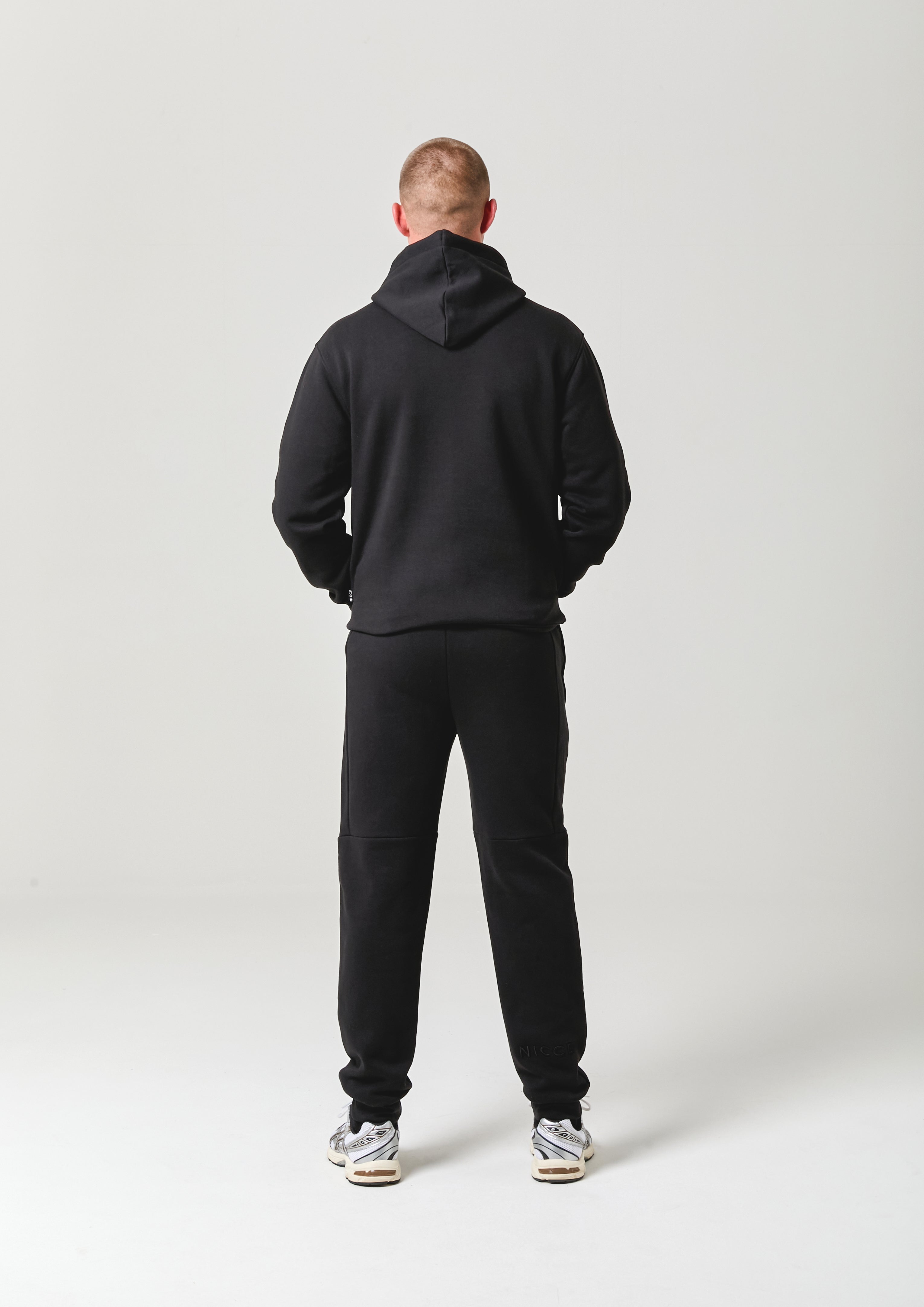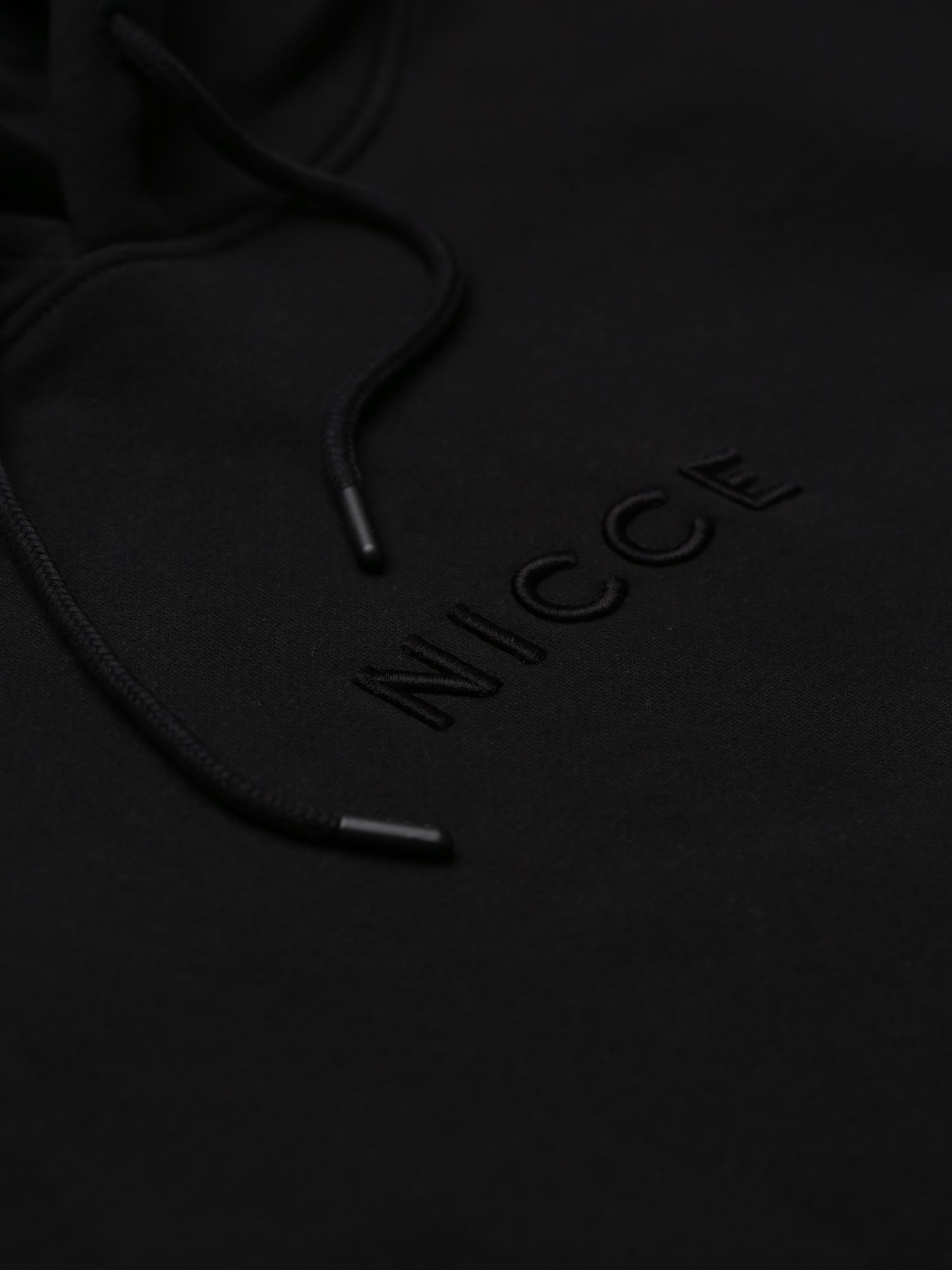 The NICCE Men's Mini Mercury Tracksuit in black pairs a clean design with subtle detailing. Tonal raised foam embroidery adds texture to the hoodies chest and joggers thigh, keeping the look minimal but considered. Made from soft fabric with a regular fit, this set is built for everyday comfort and carries NICCE's distinct streetwear influence.