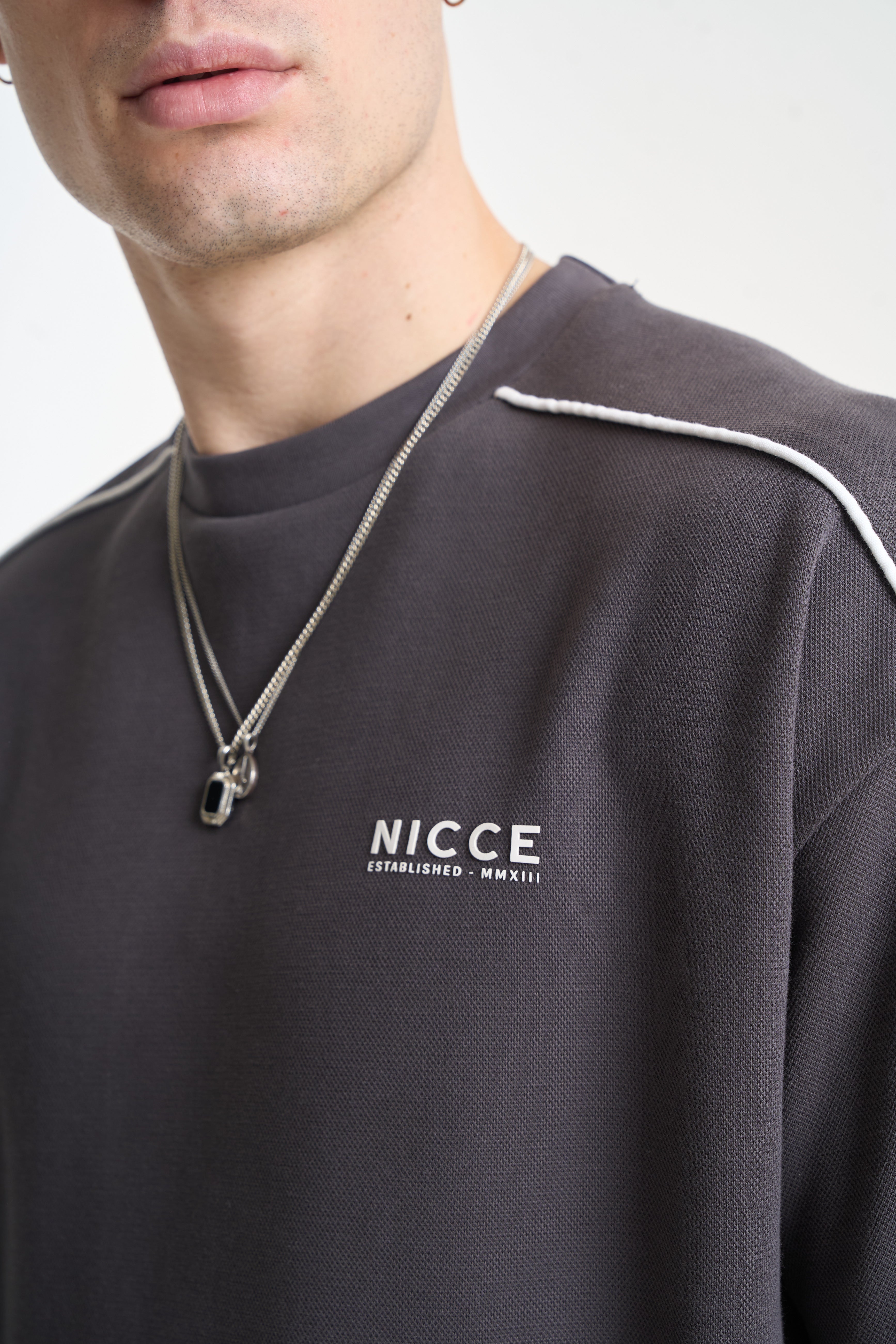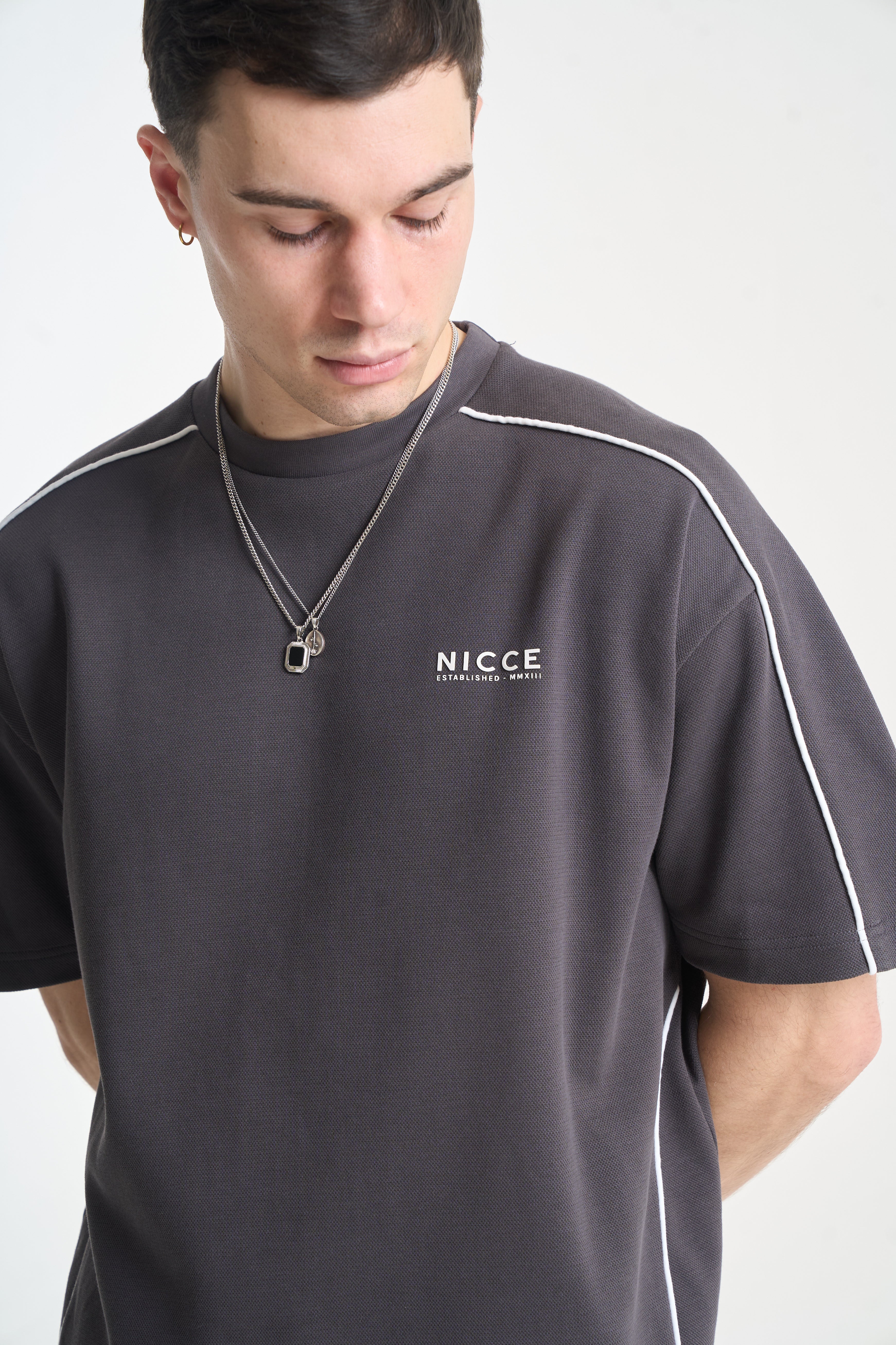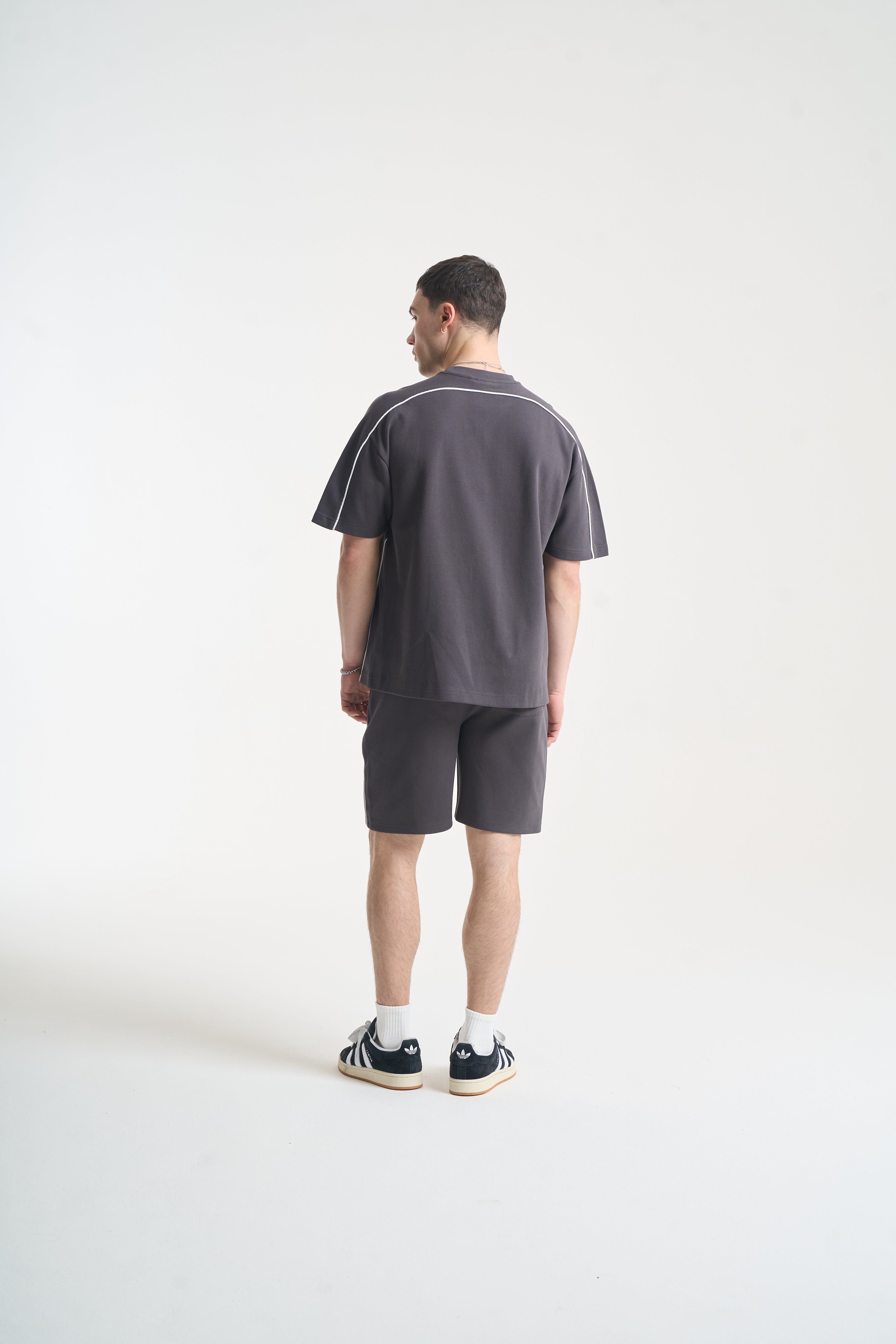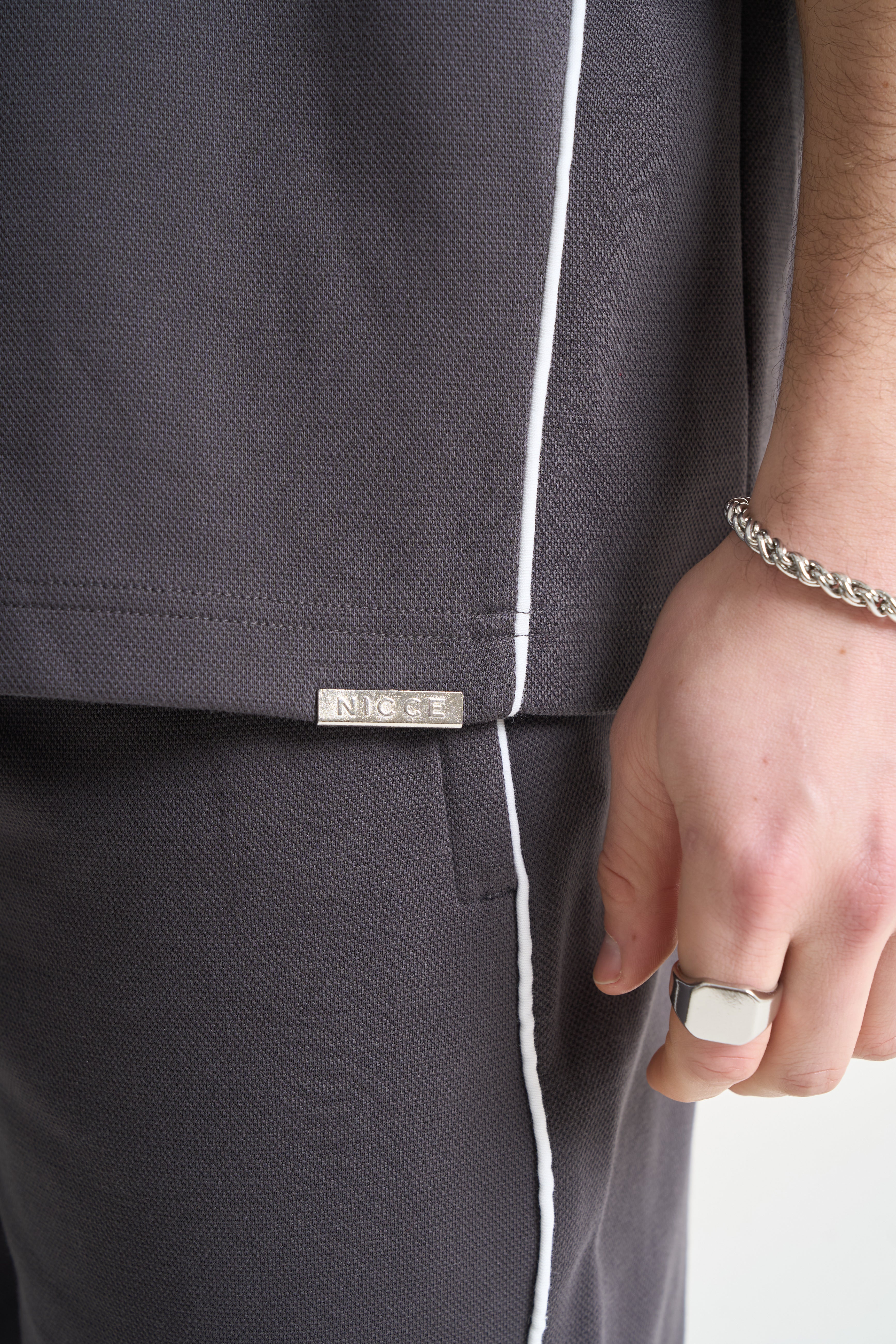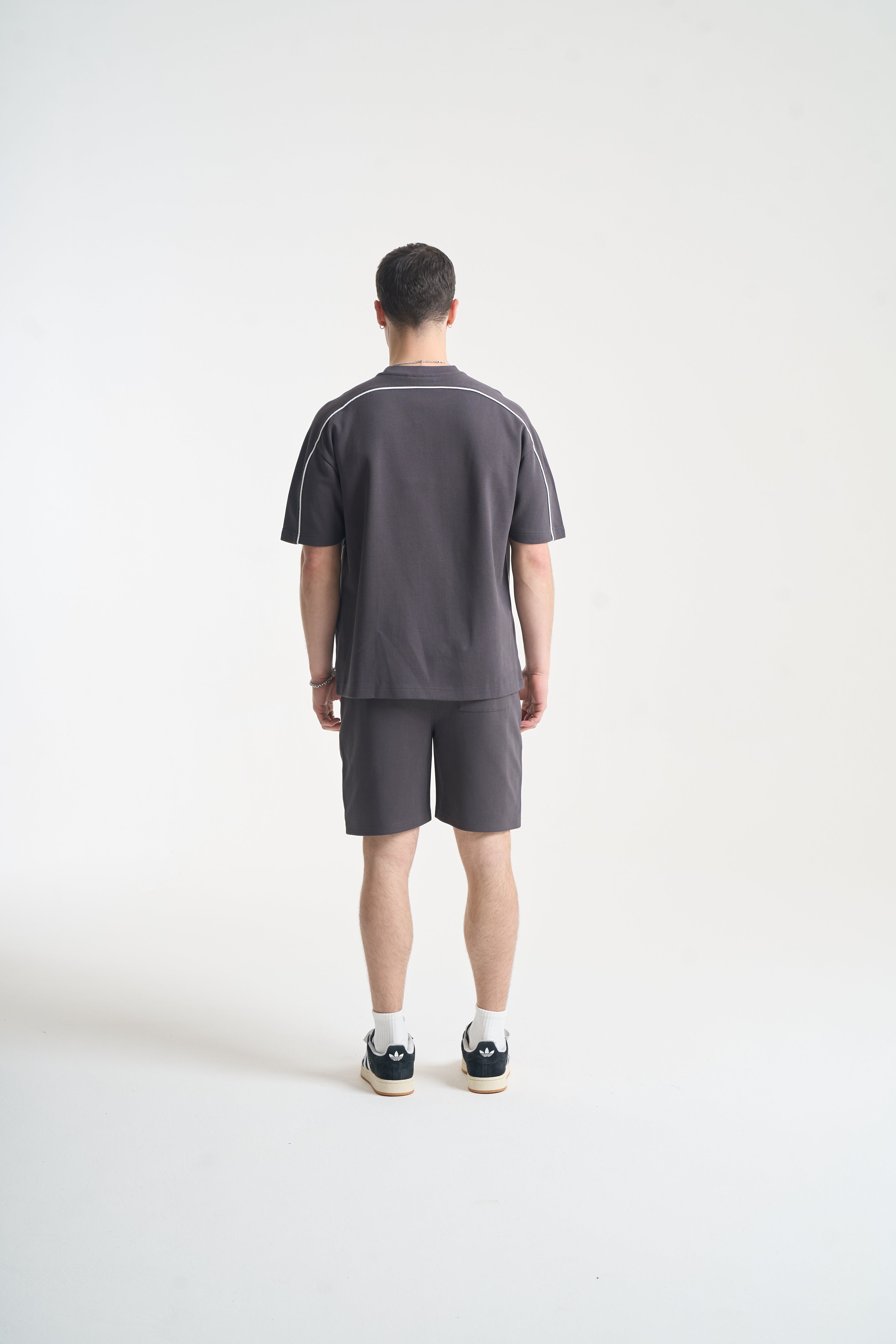 The NICCE Piper Top and Shorts Set in Coal combines relaxed comfort with clean streetwear style. The top features crisp white piping and subtle front branding, crafted from soft, durable fabric for all-day wear. The matching shorts share the same attention to detail, with coordinating piping, branding, and a relaxed fit for effortless movement.