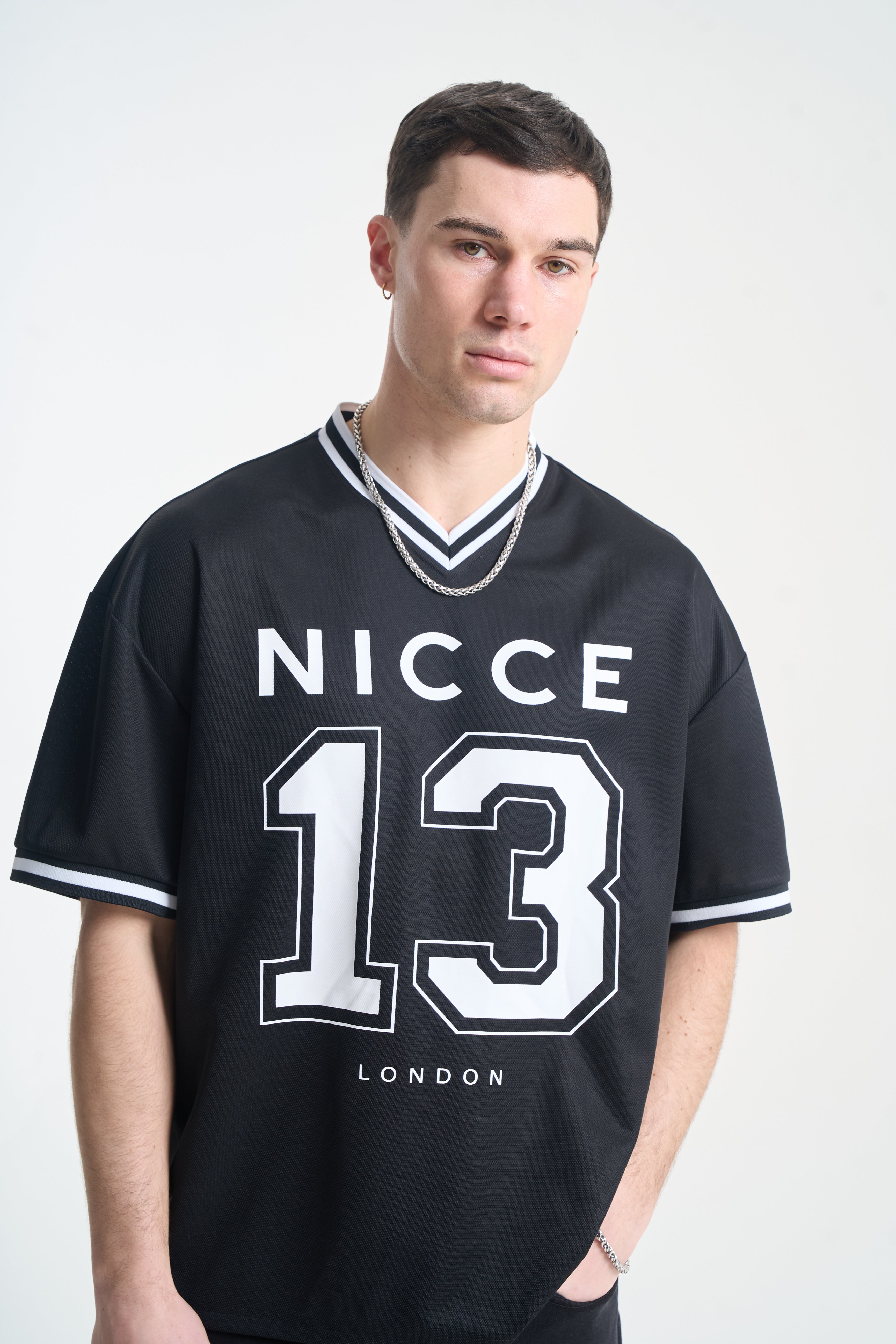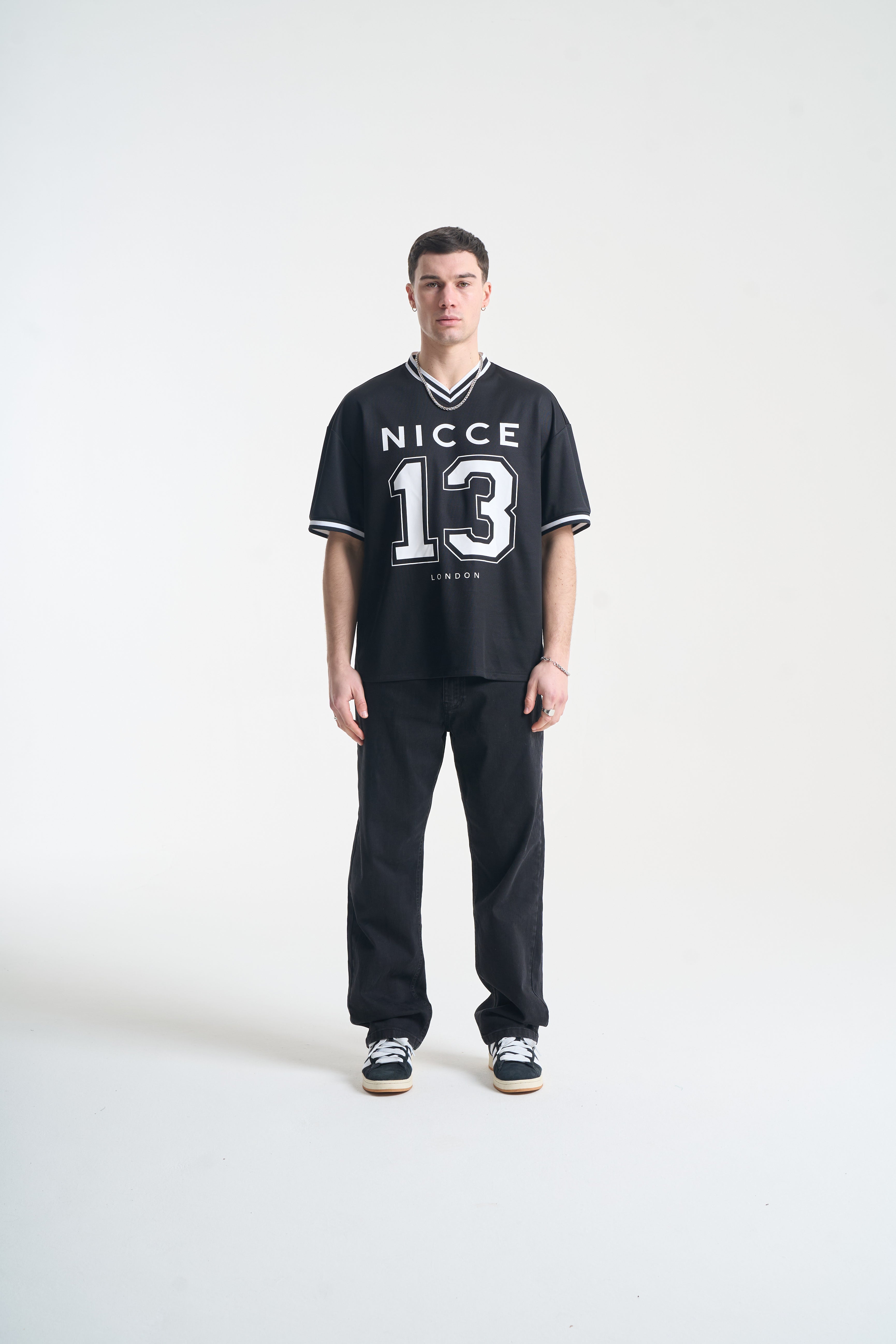 The NICCE Pitched Football Tee puts a streetwear spin on classic football styling. Crafted with an oversized fit and a V-neck, it features ribbed tipping and a flat rubber print logo on the front for standout detailing. Made for comfort and style, this tee pairs effortlessly with joggers for a relaxed day out or with shorts in summer, it’s a versatile piece for everyday. street-ready looks.