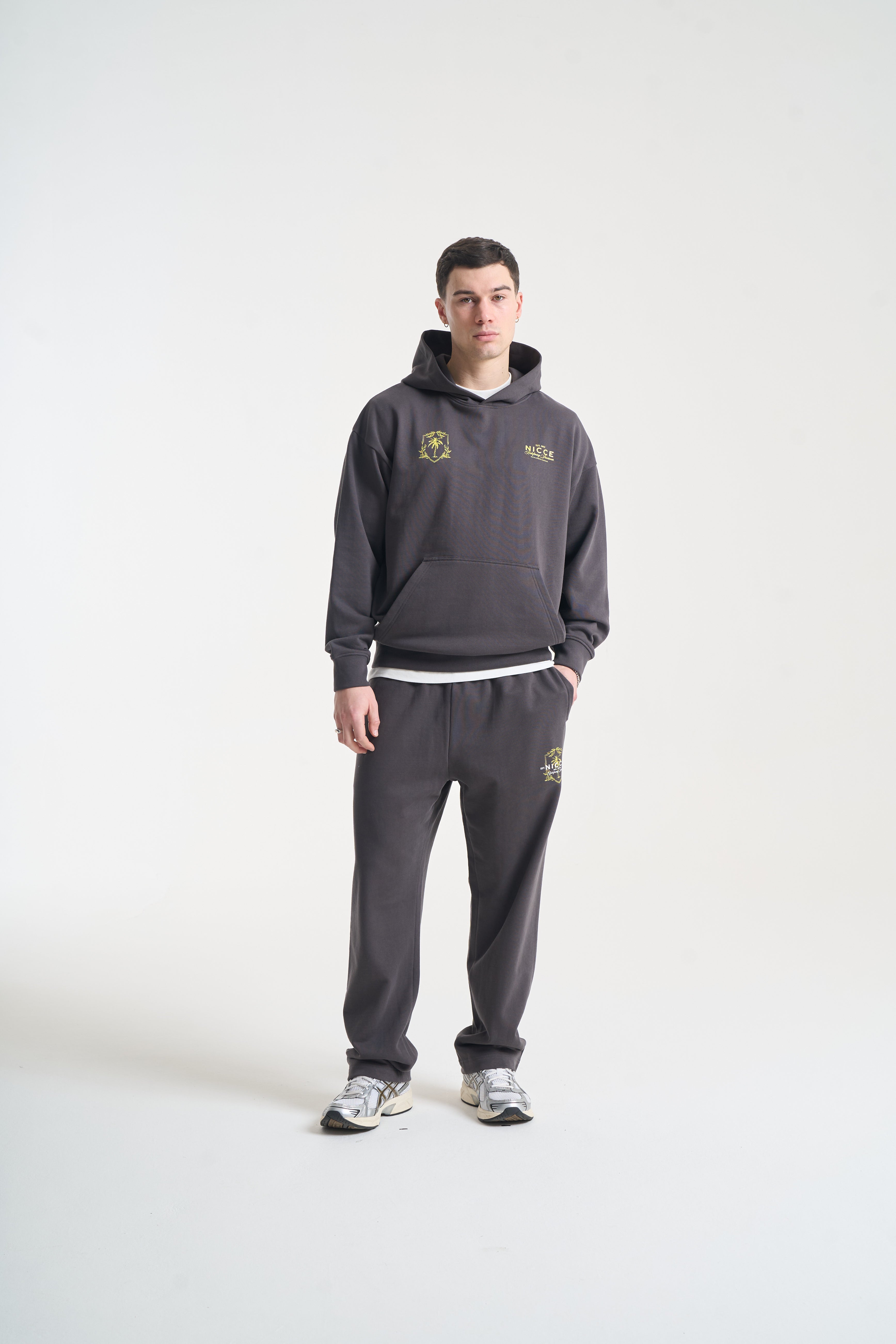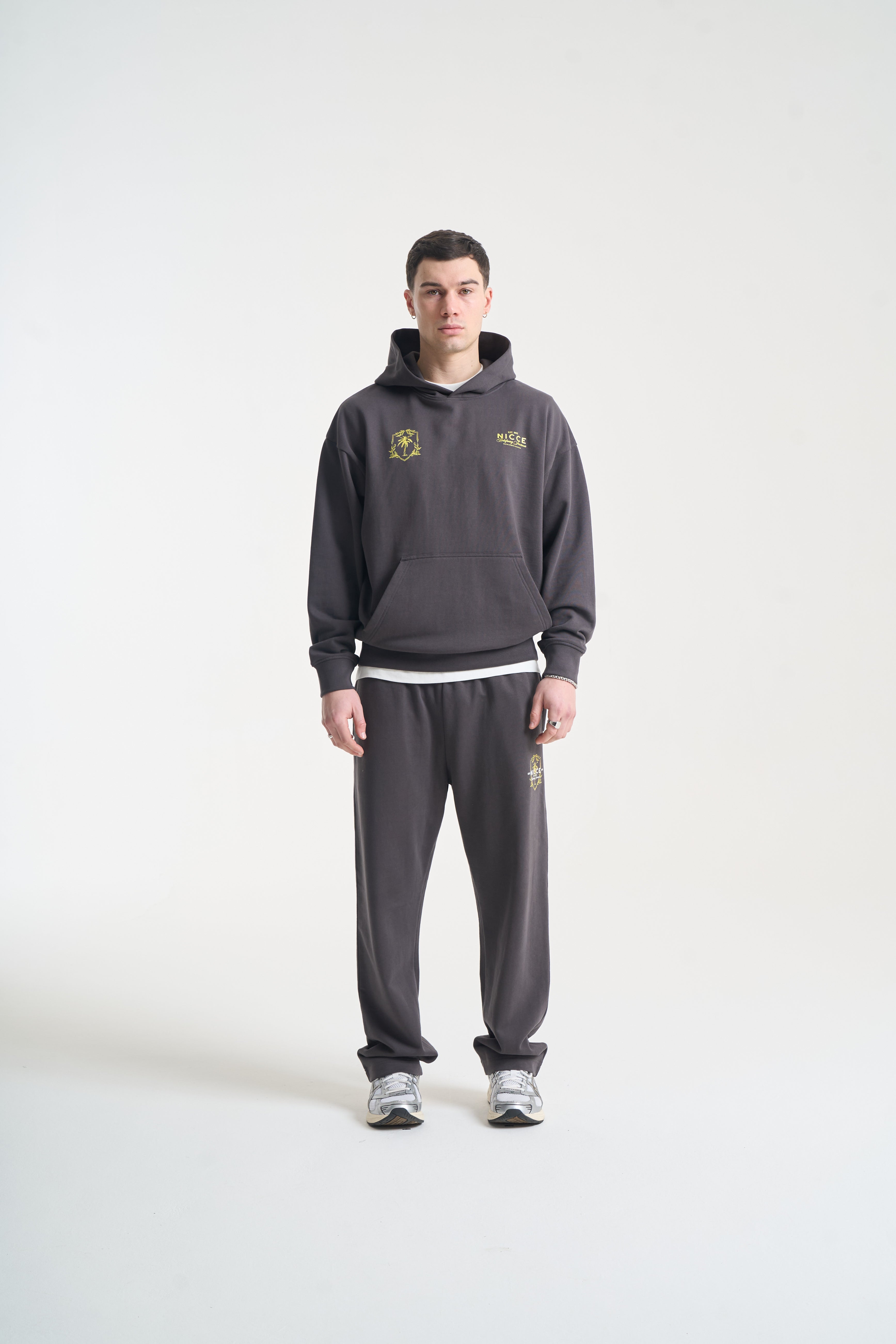 The NICCE Cresta Hoodie in Coal combines premium loopback cotton with a bold Crest artwork on the back. Designed with a smaller design across the front and front pockets, it offers comfort without compromising on street-ready style. A standout piece for layering or wearing solo this season. Available to be styled as a full look with or Cresta Shorts for warmer days or our Cresta Open Hem Joggers for cooler evenings.