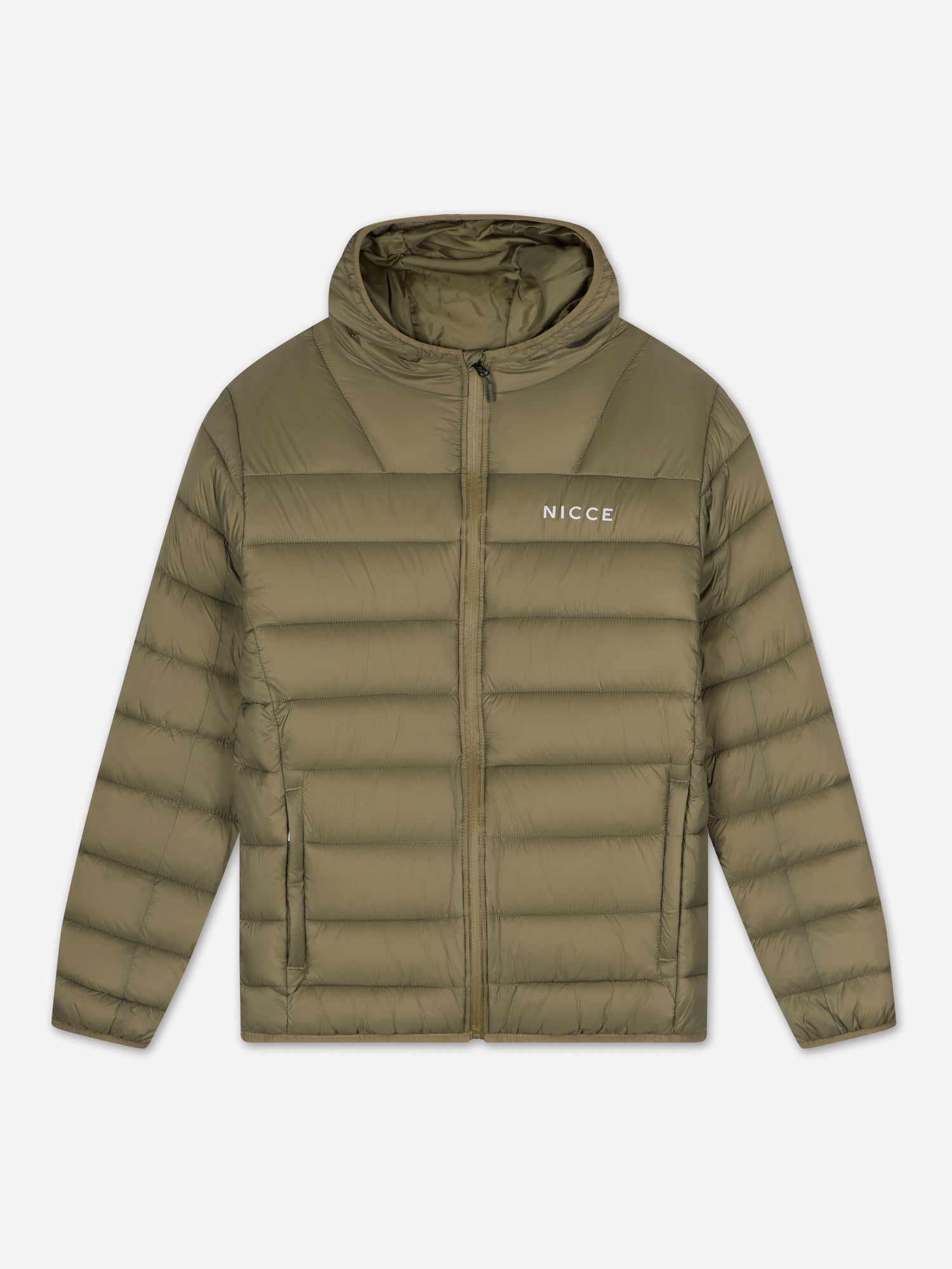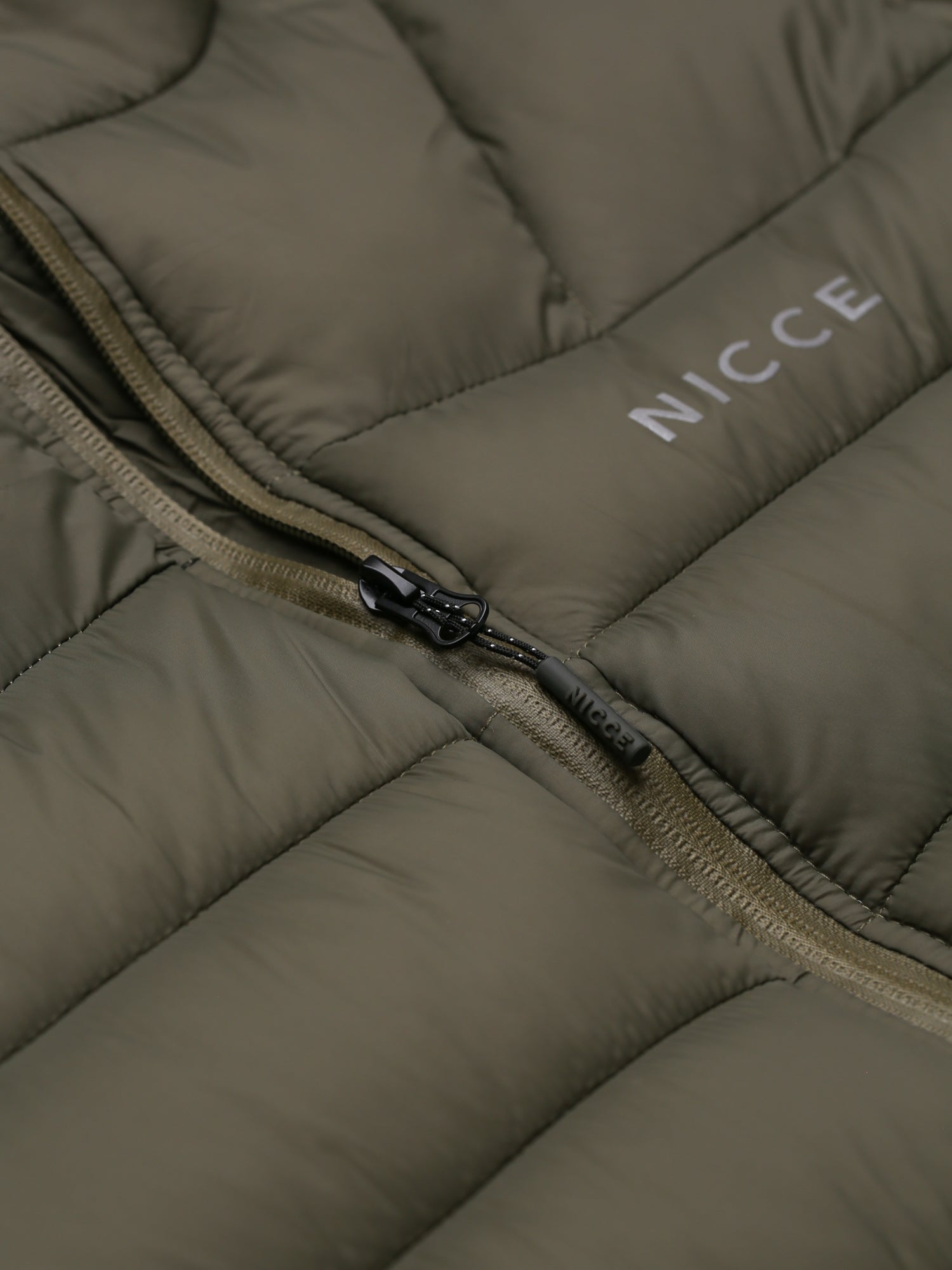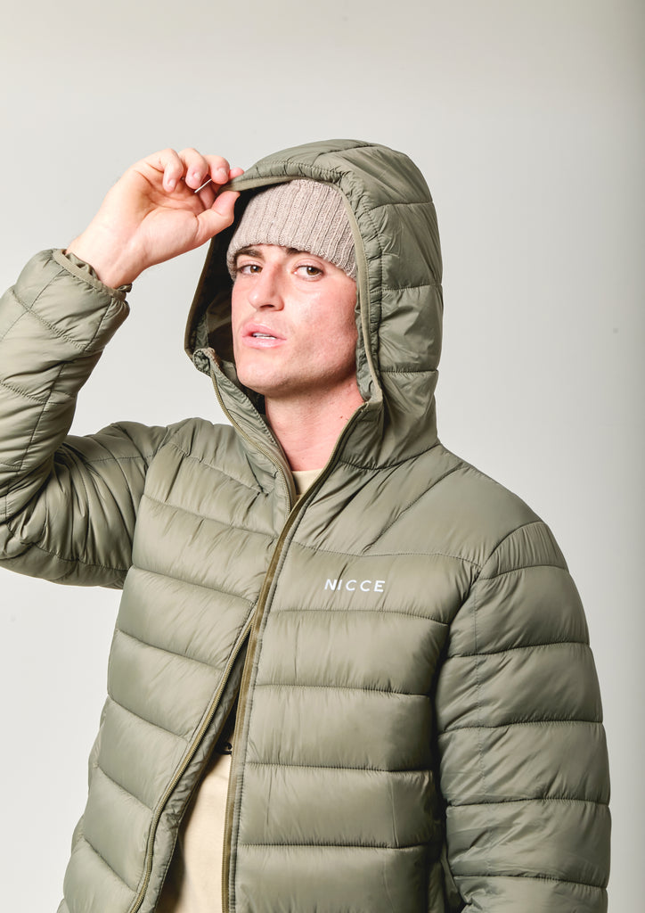 The Khaki Lionel Jacket offers lightweight warmth with a sleek, versatile design, making it a must-have mens padded coat. Designed in a khaki colourway, this green padded coat features horizontal quilting for insulation while maintaining an easy-to-layer fit. With a full-zip front, adjustable hood, and elasticated cuffs, it locks in heat while keeping a clean, minimal look with the NICCE logo on the chest. Perfect for cooler days, this green padded coat pairs effortlessly with hoodies, joggers, jeans, or cargos.