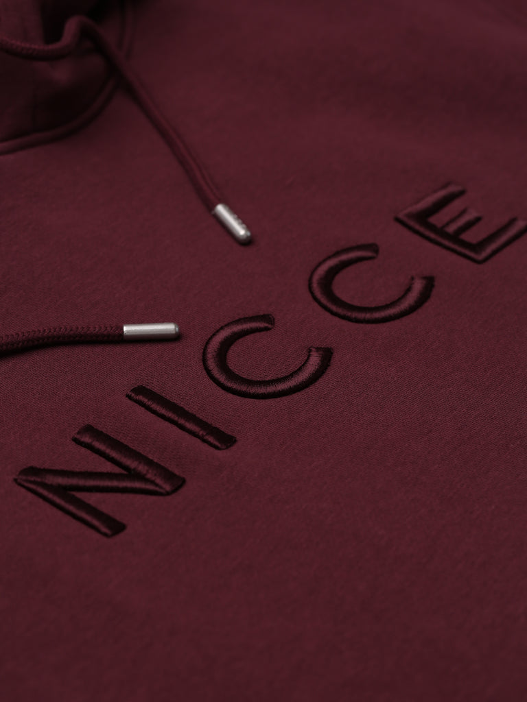 The Mercury Hoodie returns this AW25 season in a new burgundy colourway. Designed with a regular fit, it features an embroidered NICCE logo across the chest, a kangaroo pocket, and ribbed trims for a clean finish. Made for everyday wear, whether layered or worn on its own.