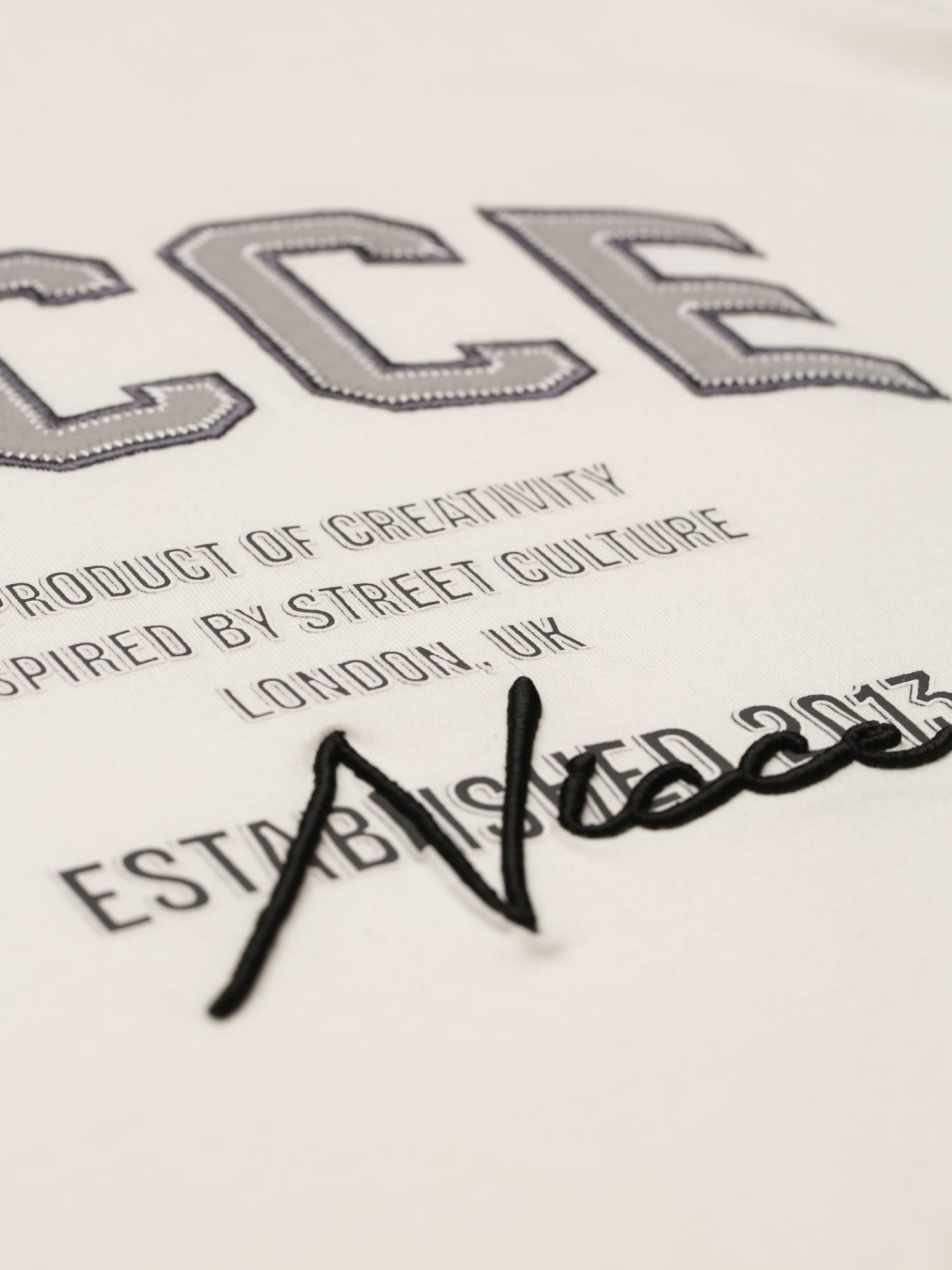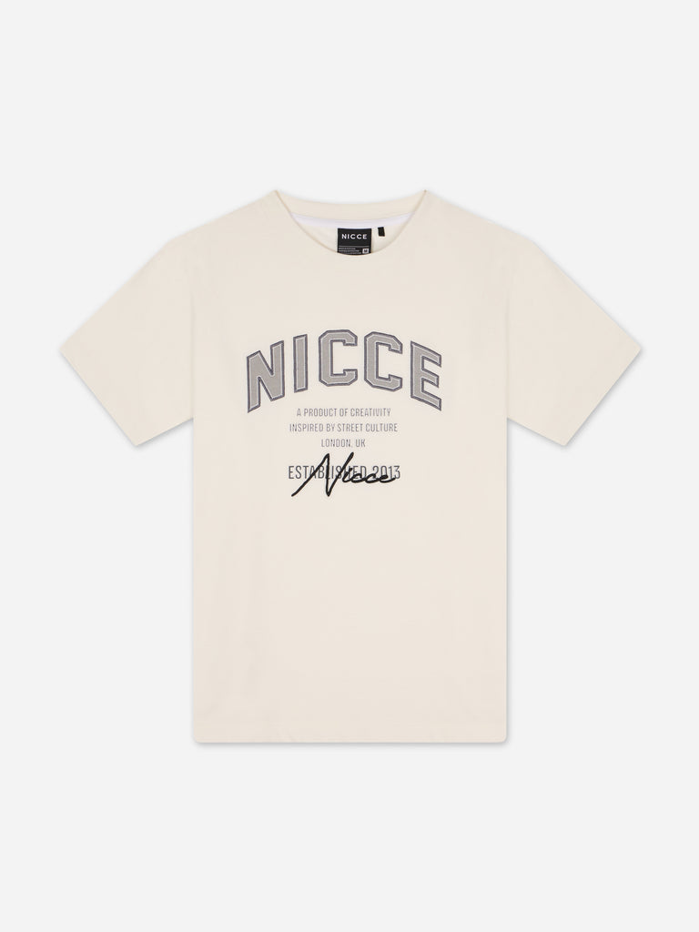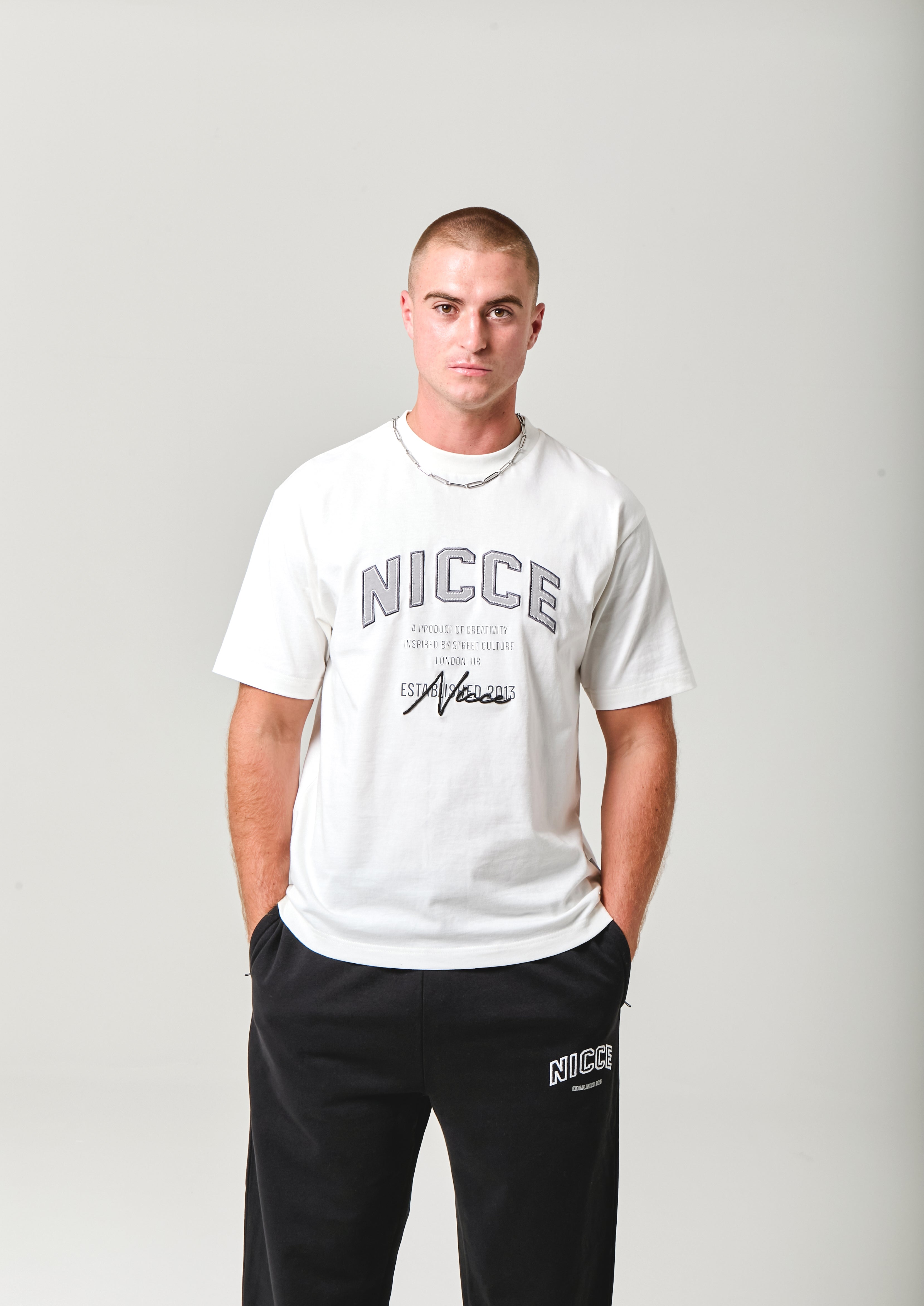 The Elevate Oversized T-Shirt in Off White brings extra volume with a more relaxed fit, finished with NICCE’s raised varsity-style logo and signature script print across the chest. Clean, soft, and designed with room to move.