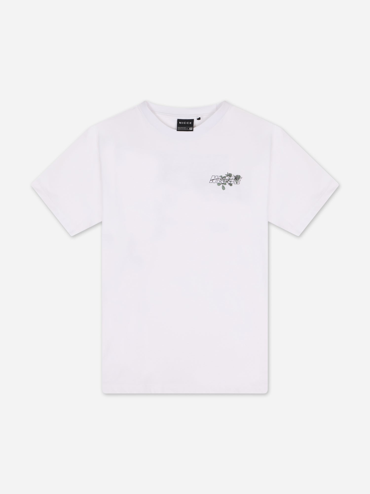Make a subtle statement with the Essence T-Shirt — where minimal design meets graphic detail. Featuring a small floral chest print and a bold back graphic with layered typography and nature-inspired elements, this tee blends organic influence with streetwear edge.