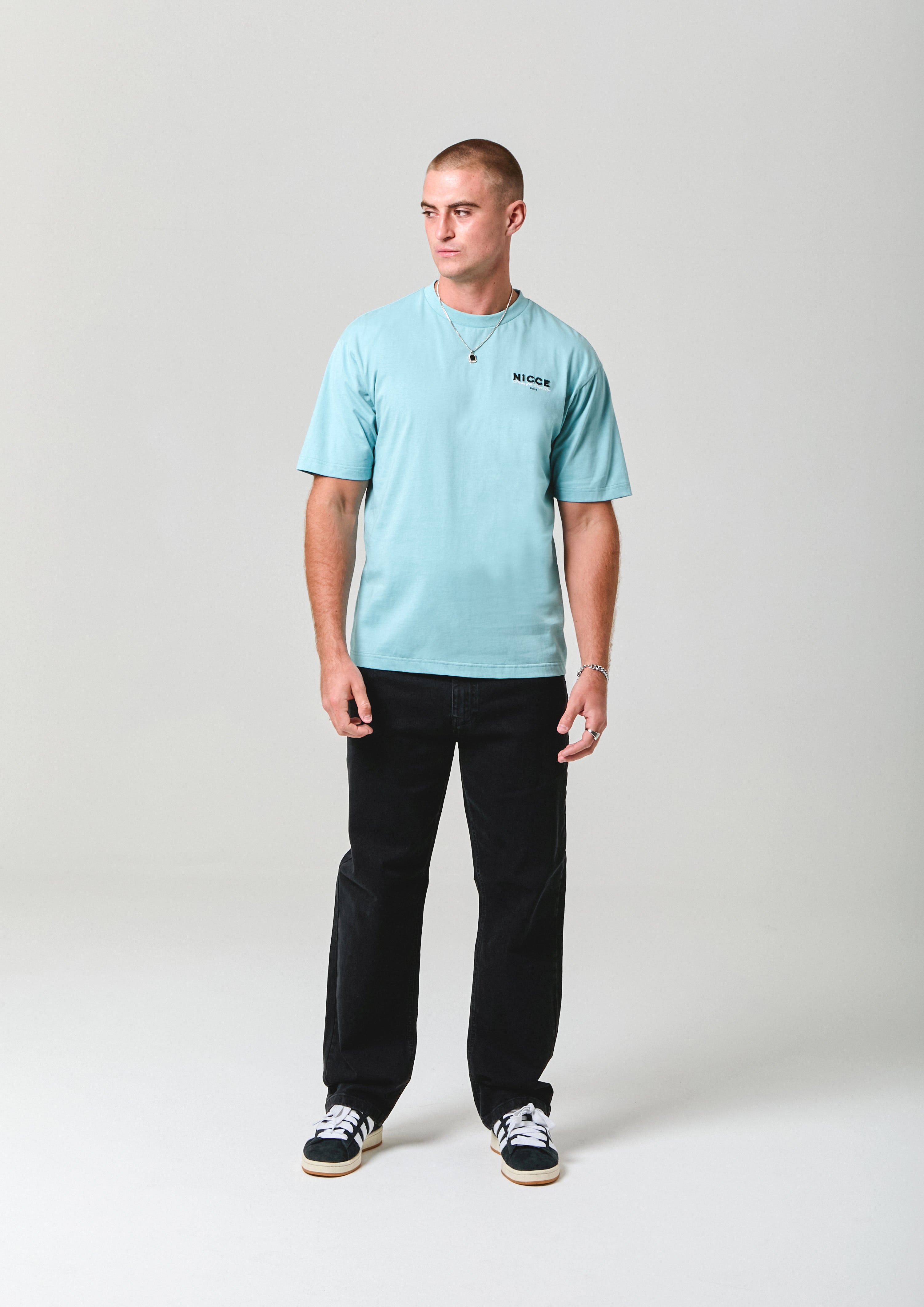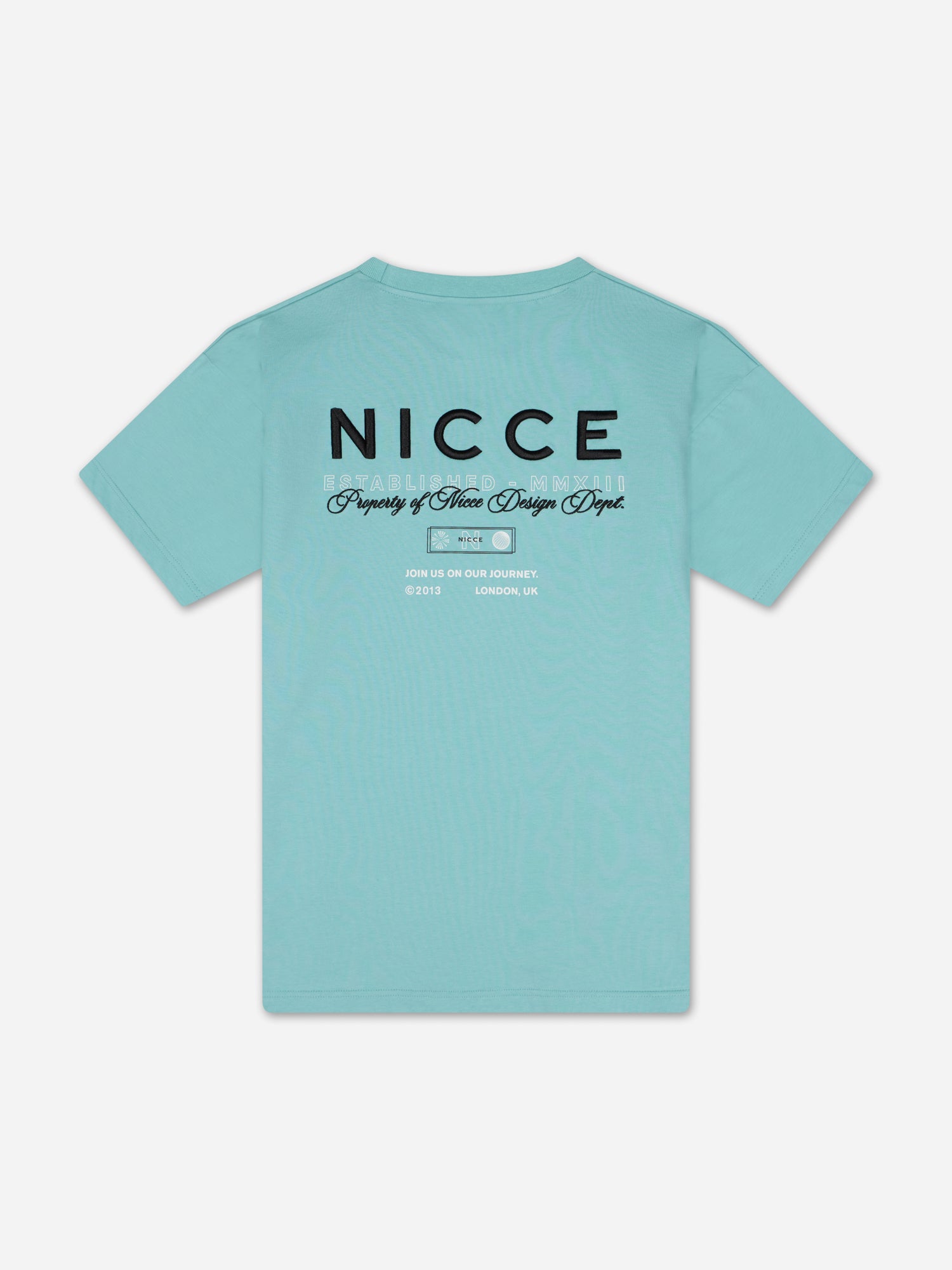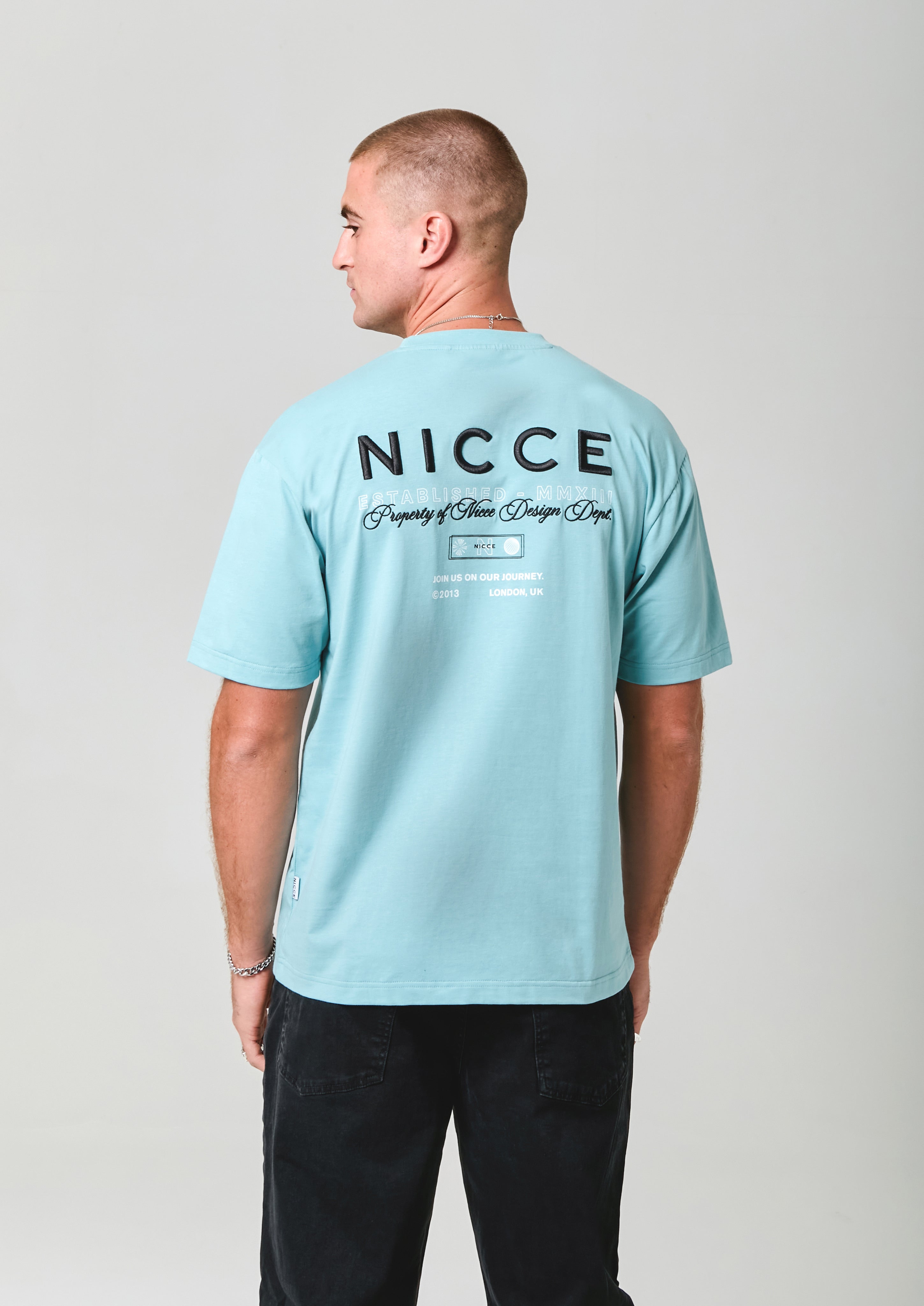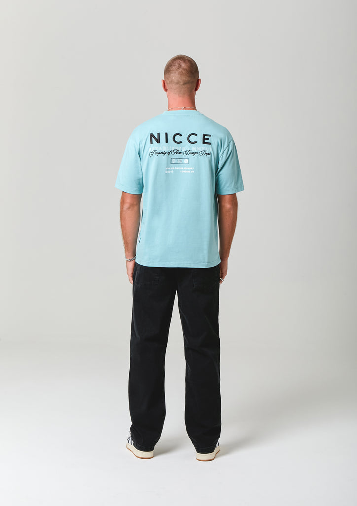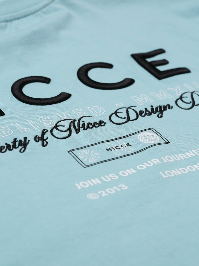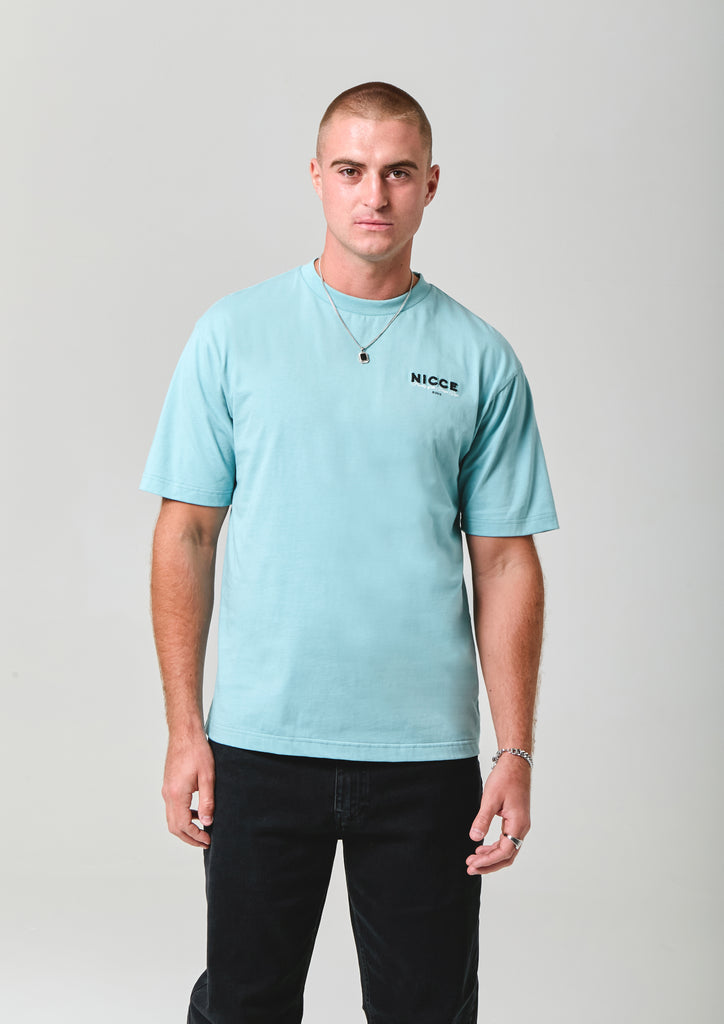 The NICCE Meridian T-Shirt in blue delivers a relaxed, oversized fit with a street-ready edge. A small front logo keeps it clean, while the full back design—featuring a mix of embroidery and print—adds standout detail. Easy to throw on with jeans for an effortless evening look.