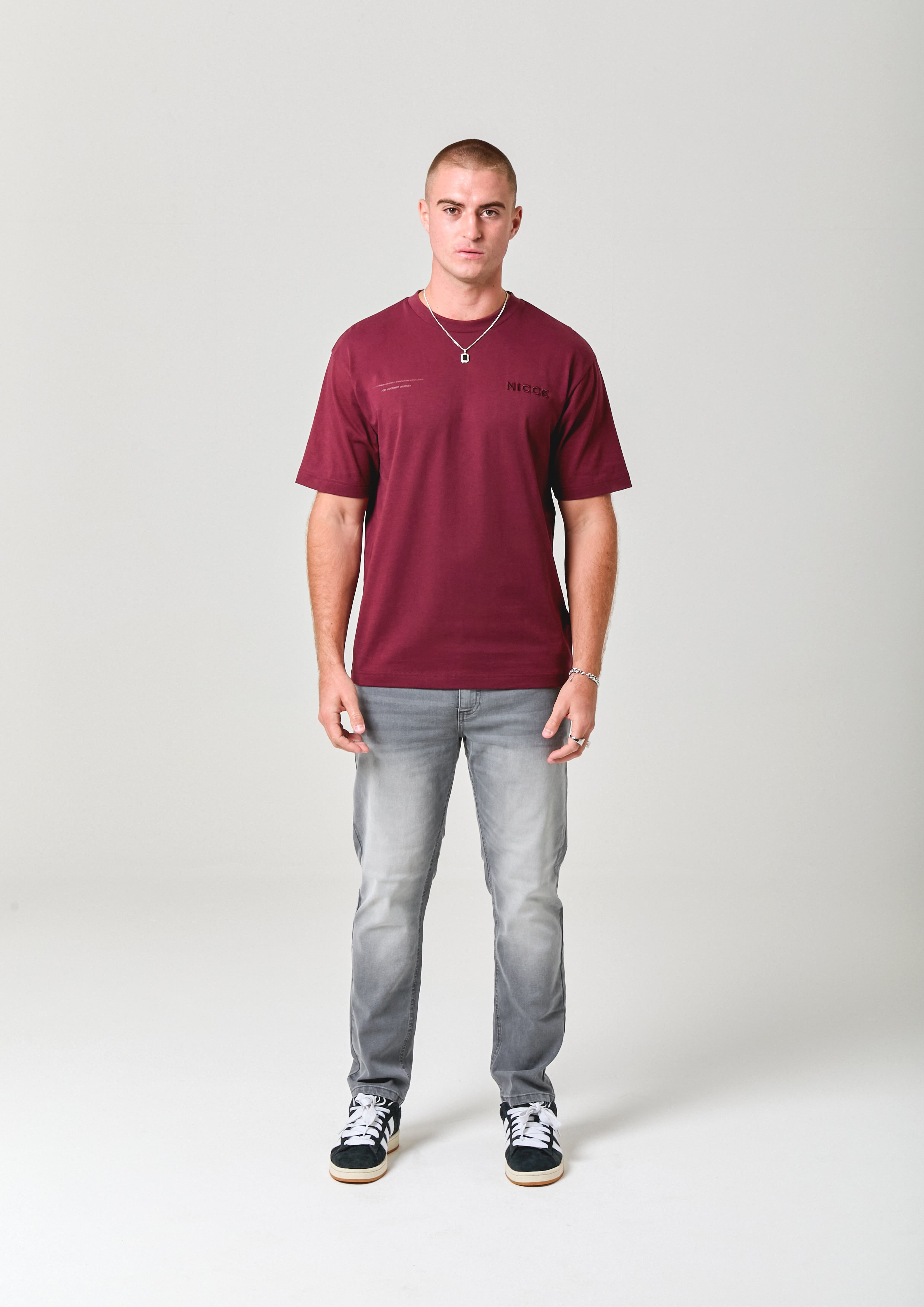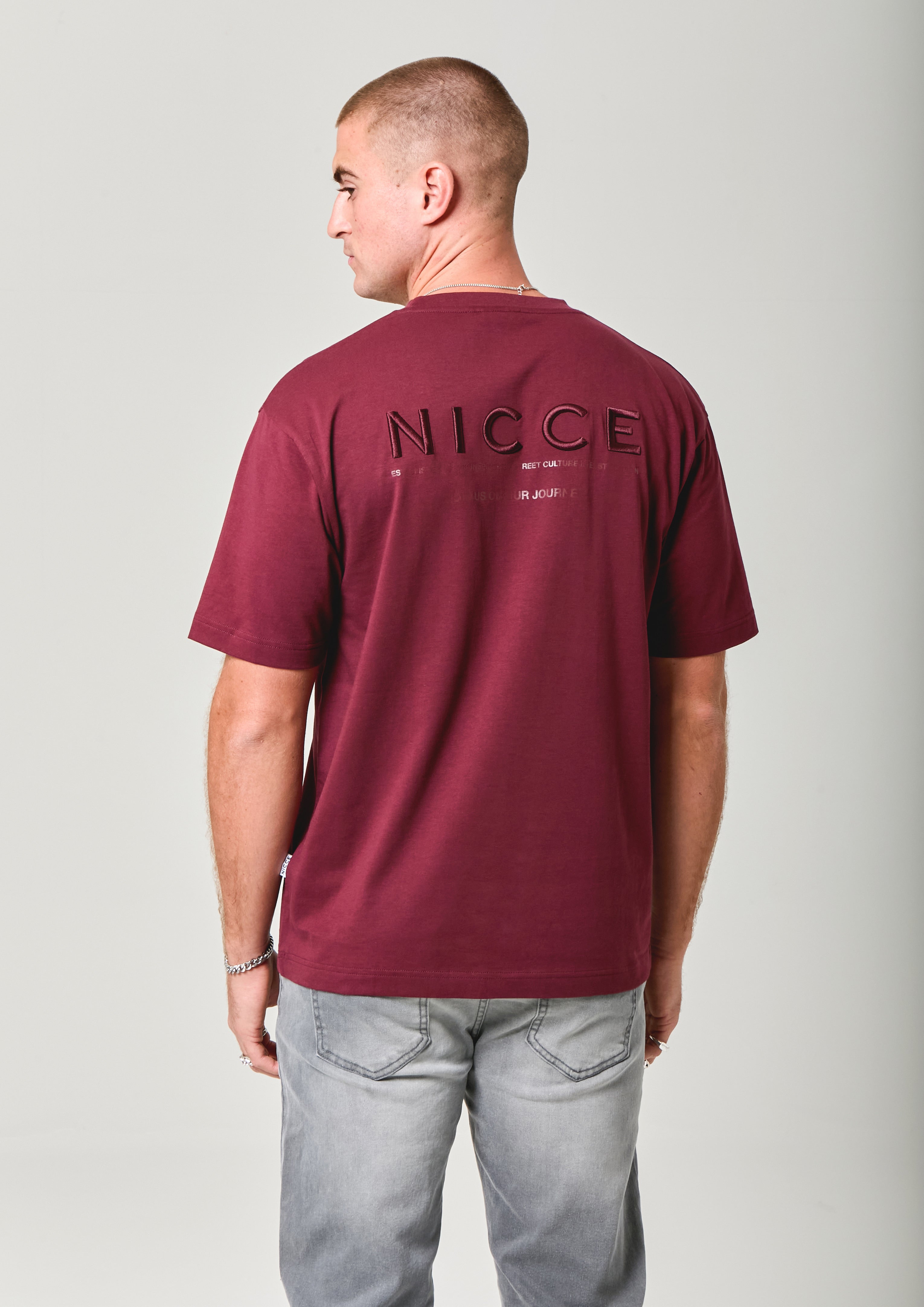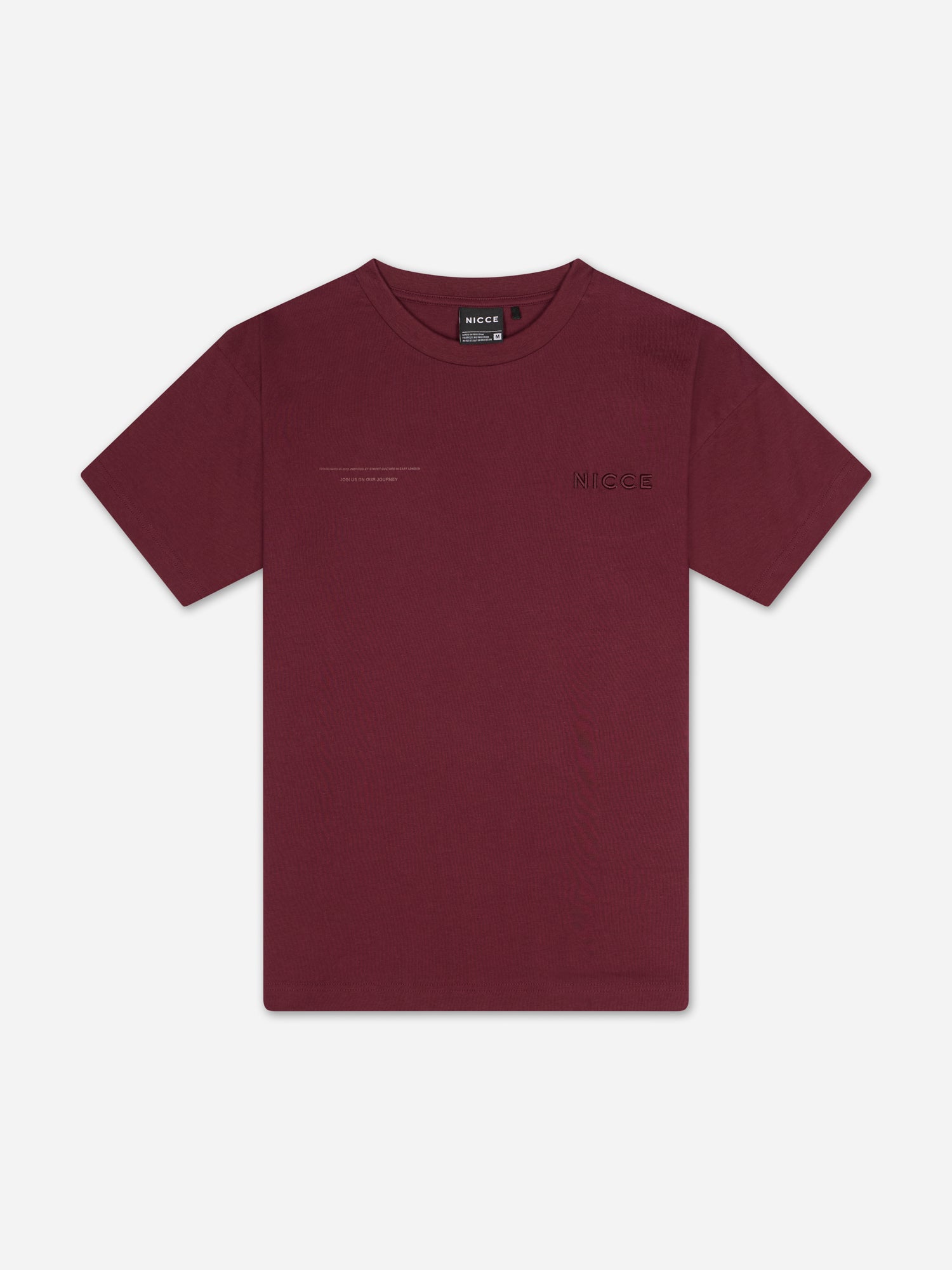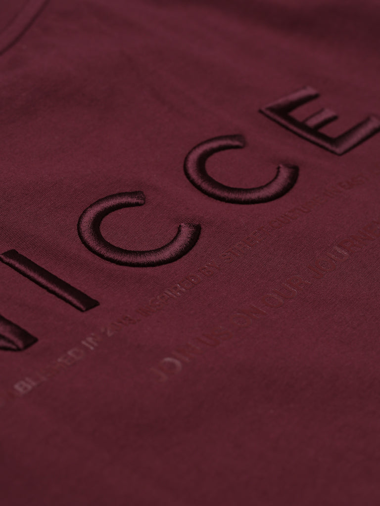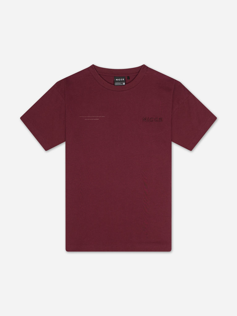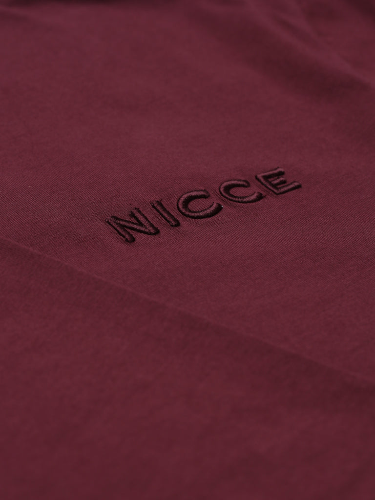 The NICCE Script Essential T-Shirt in fig blends a purple-red tone with embroidered branding on the chest and a striking design across the back. Featuring a regular fit and short sleeves, it’s a reliable pick for relaxed, everyday style—perfect for taking you from day to night.