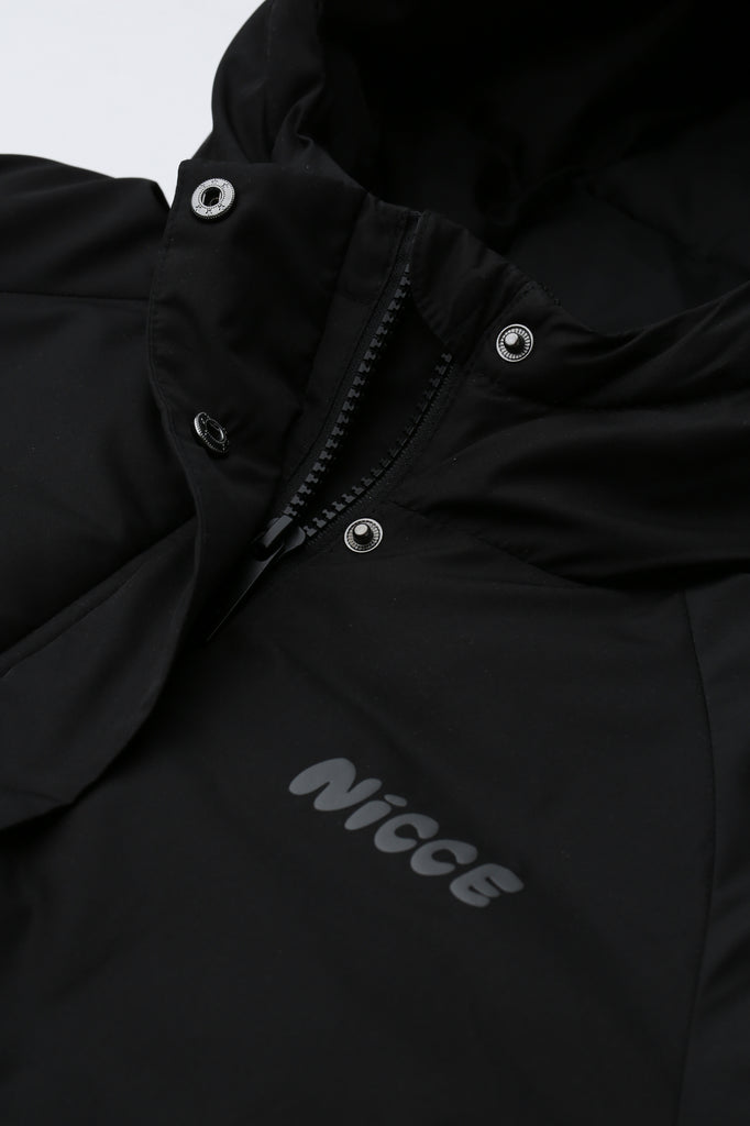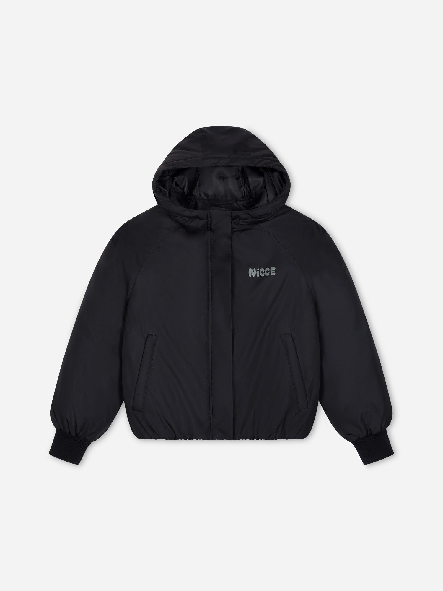 Stay ahead in streetwear with the NICCE Girls Mylee Jacket in black. Featuring a bold printed logo on the front and back, this hooded jacket blends comfort and edge effortlessly. Two front pockets keep essentials close, while cuffed sleeves add a snug finish. Perfect for layering or as a standalone statement, it's a must-have for a sleek, everyday look.
