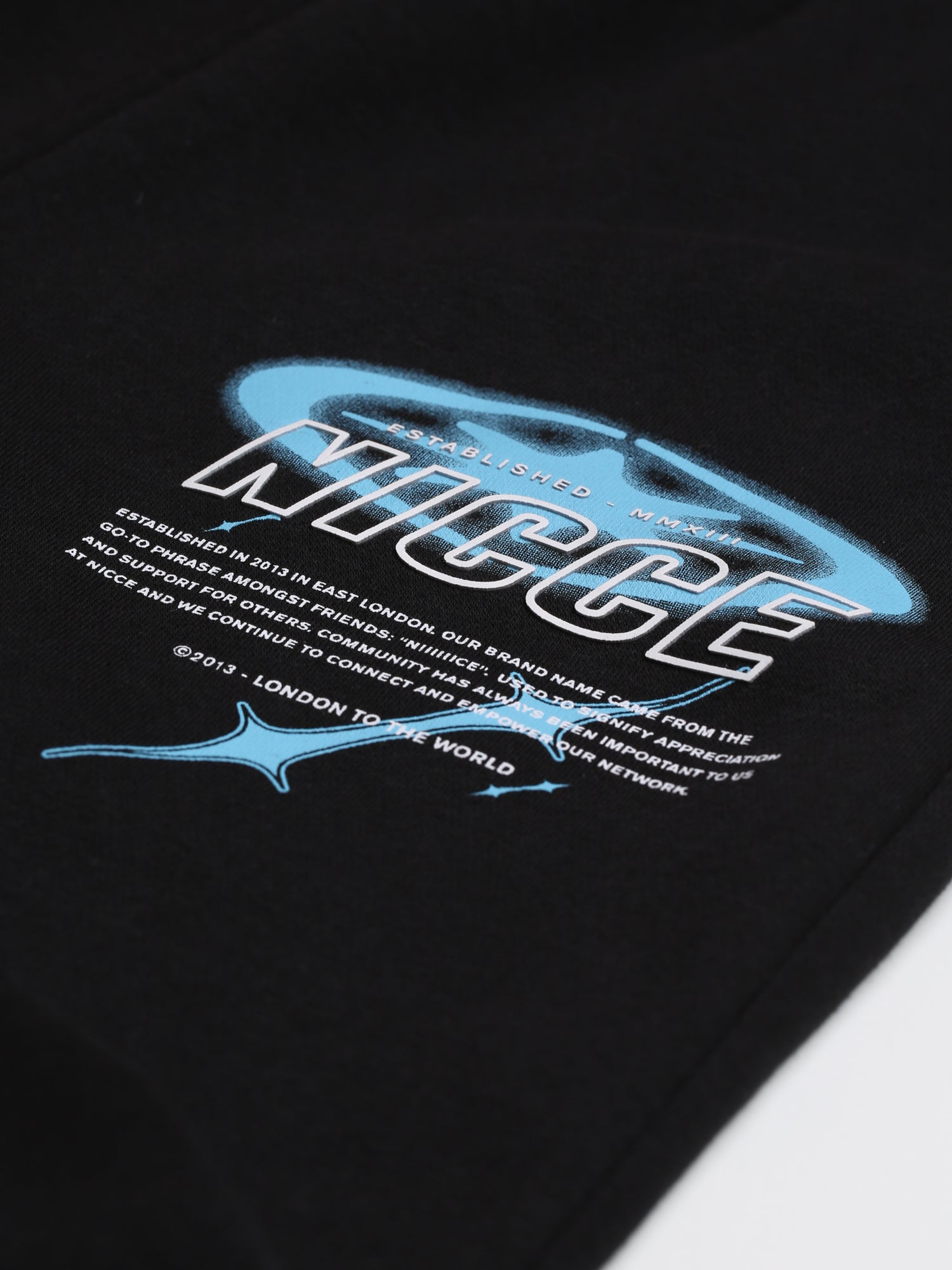 The NICCE Juniors Tag Joggers in black feature a relaxed fit with bold graphic details, including a logo on the left leg and star print on the right. These unisex joggers have side pockets and a drawstring waist for all-day comfort. Pair with matching Tag tees or hoodies for a complete streetwear look.