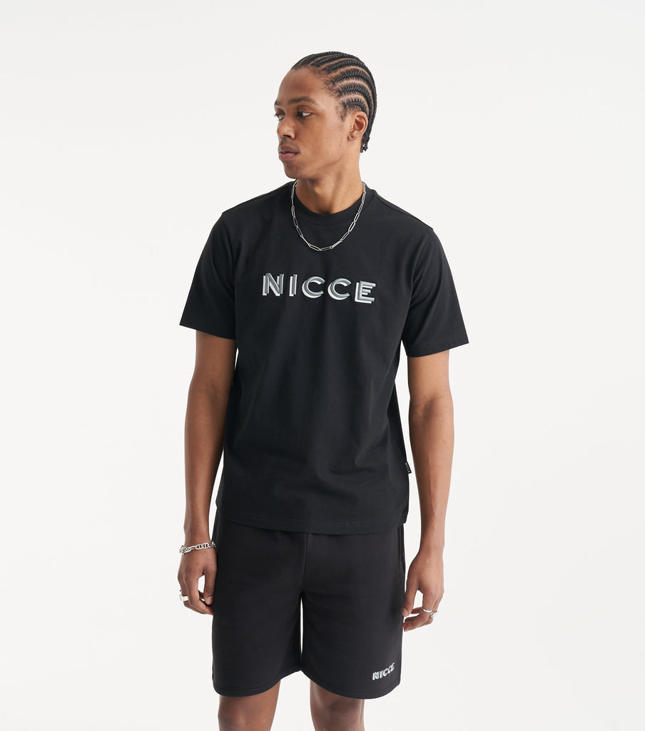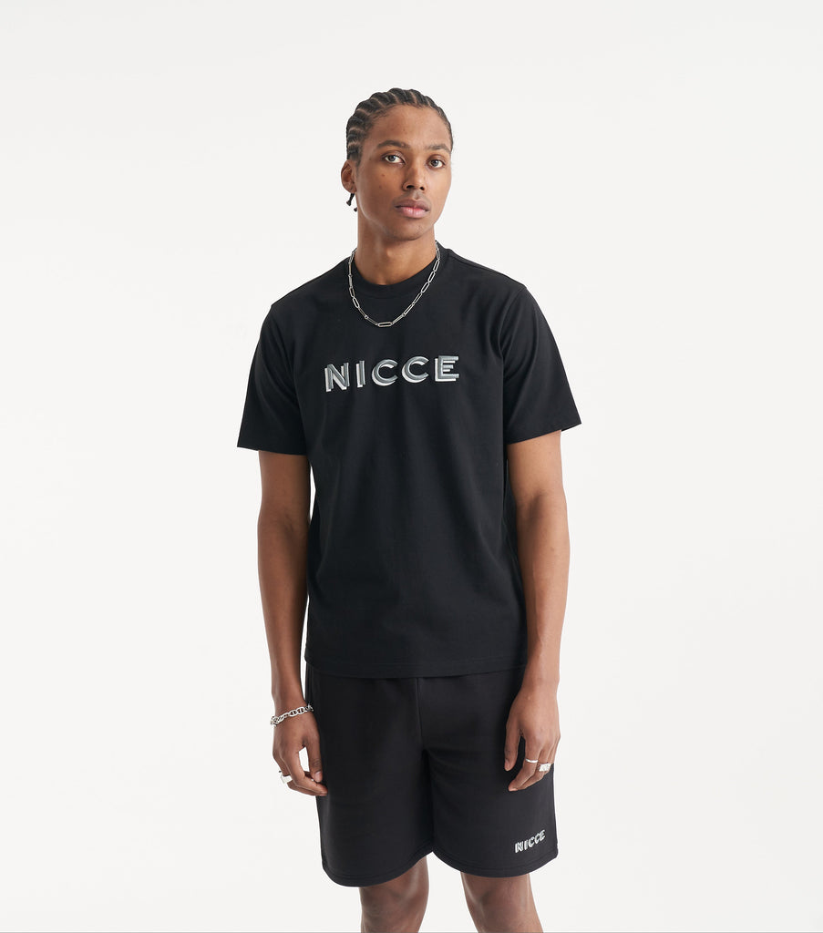 The NICCE Men's Forma T-shirt in black is a sleek, everyday essential with a bold twist. Featuring the signature NICCE logo on the chest, this tee adds a street-smart edge to any outfit. Made from soft, breathable fabric, it's built for comfort and designed for those who like their streetwear simple yet impactful. Whether you're layering up or rocking it solo, the Forma T-shirt is a must-have for effortless, urban style.