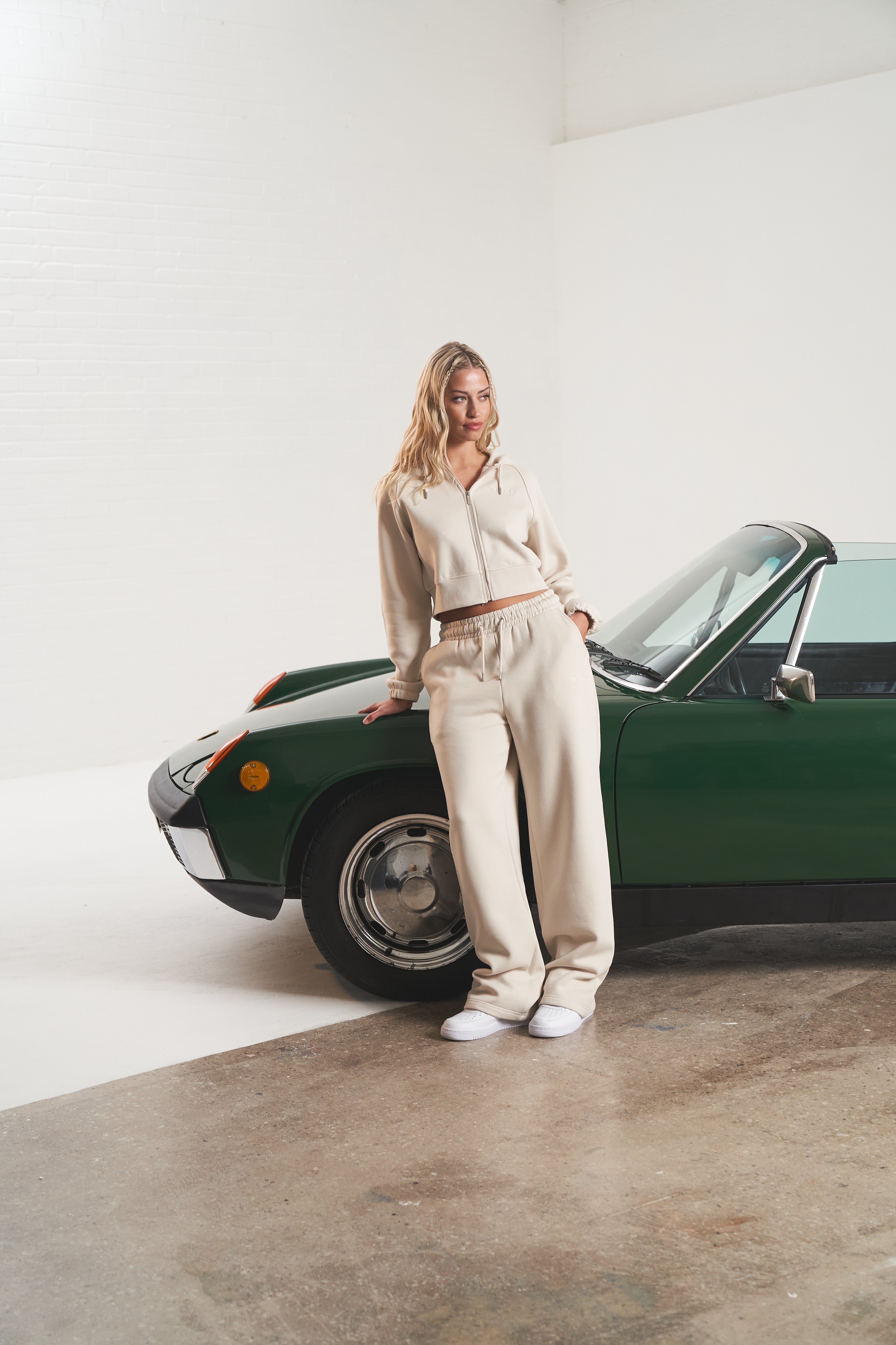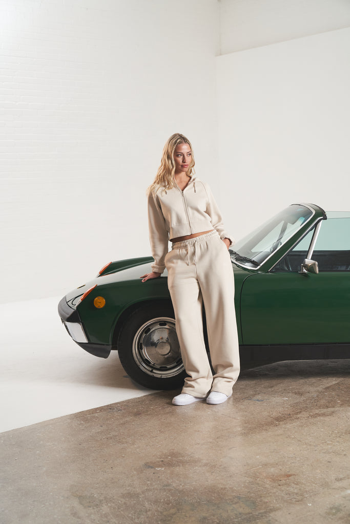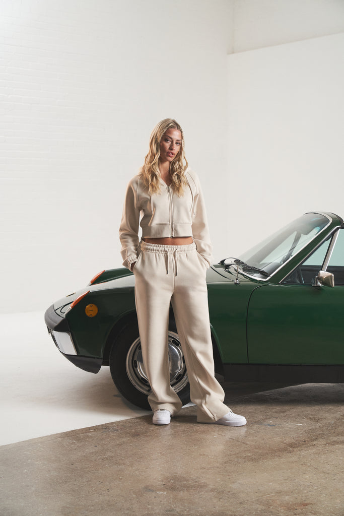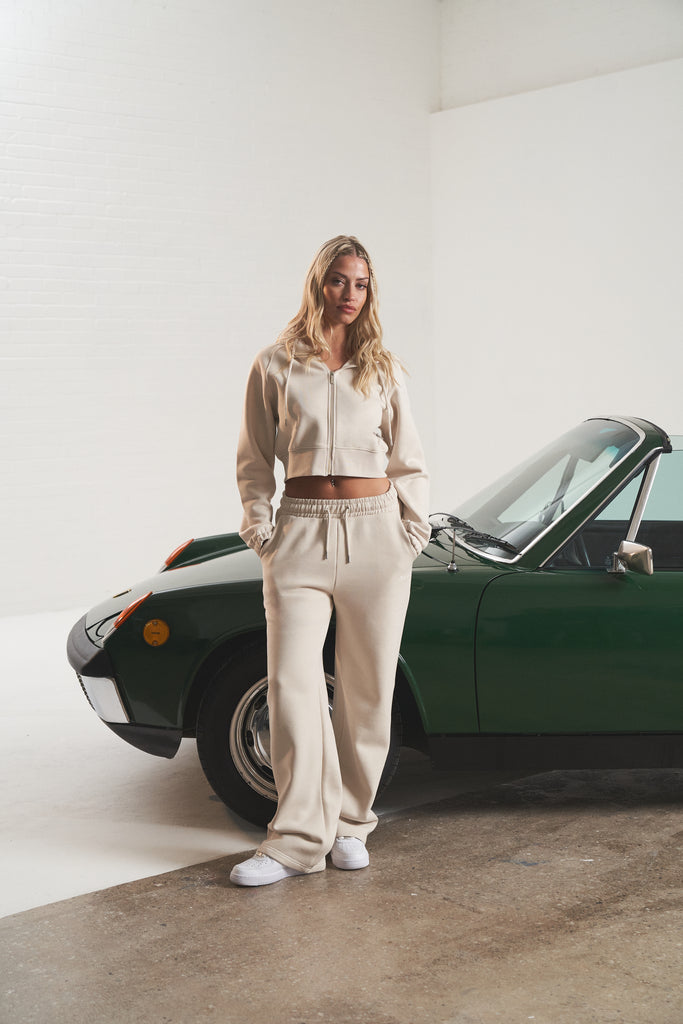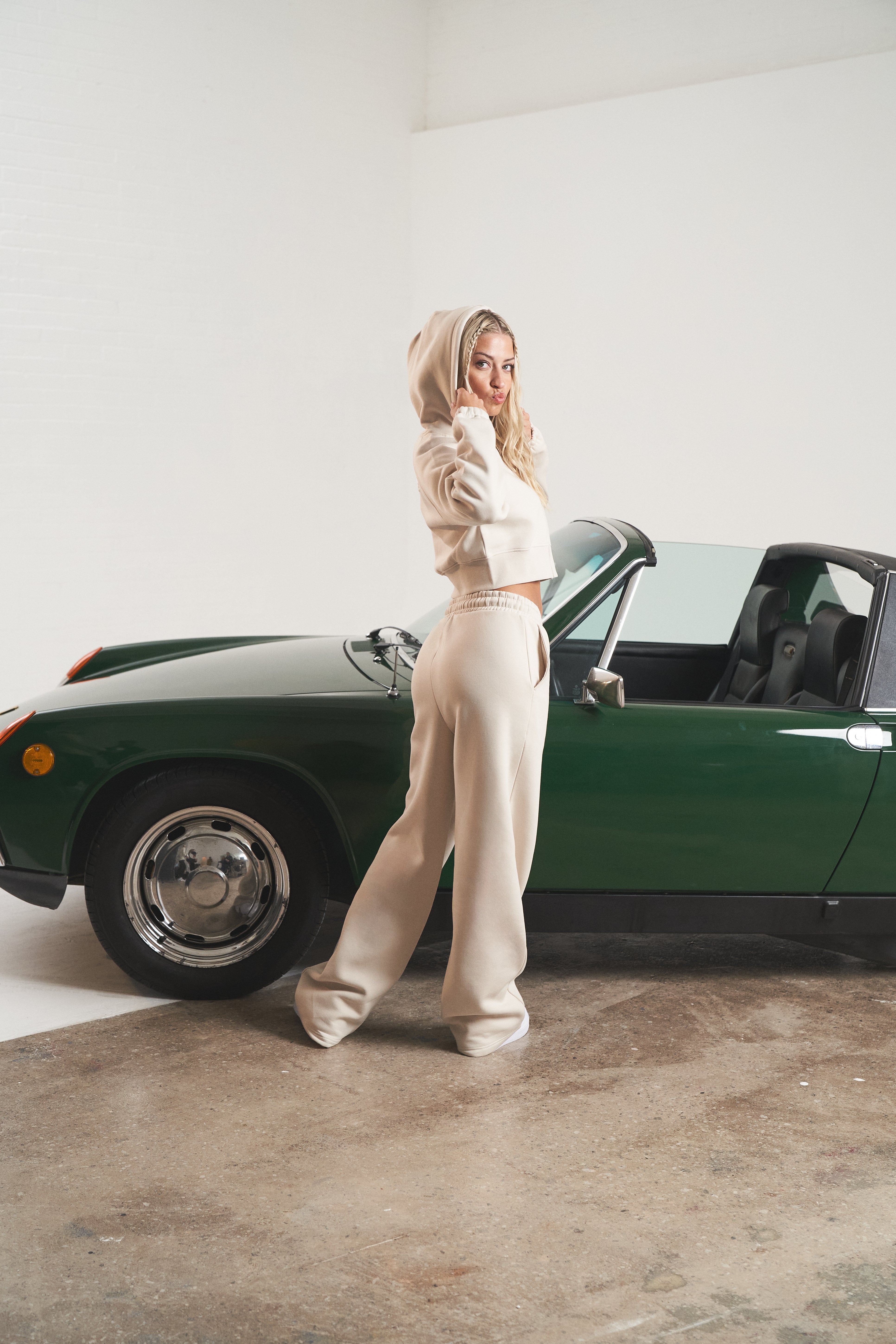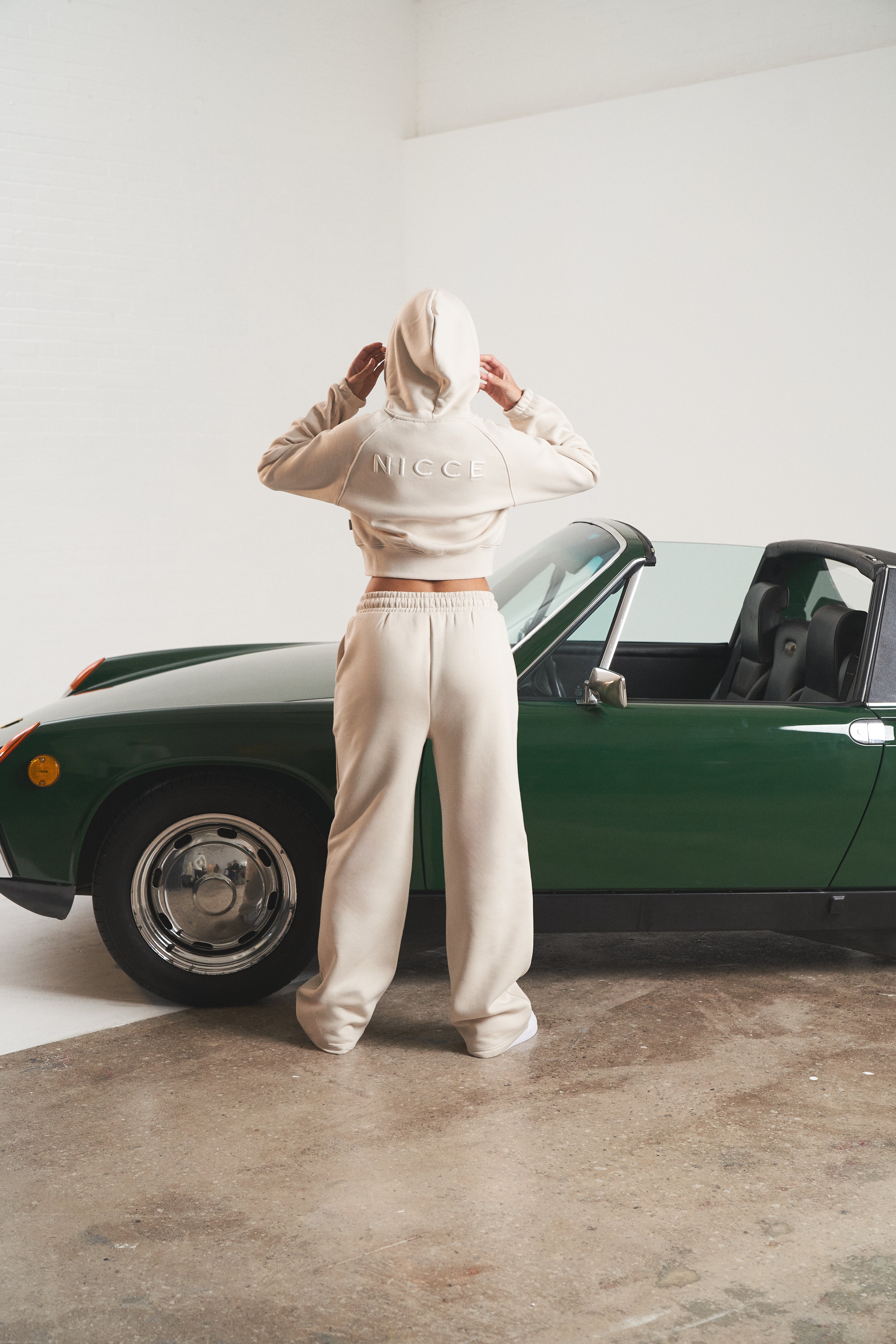 The NICCE Women's Ersa Open Hem Joggers in Sandshell blend laid-back comfort with streetwear appeal. Featuring raised embroidery on the left thigh, these joggers add a stylish edge to any casual outfit.